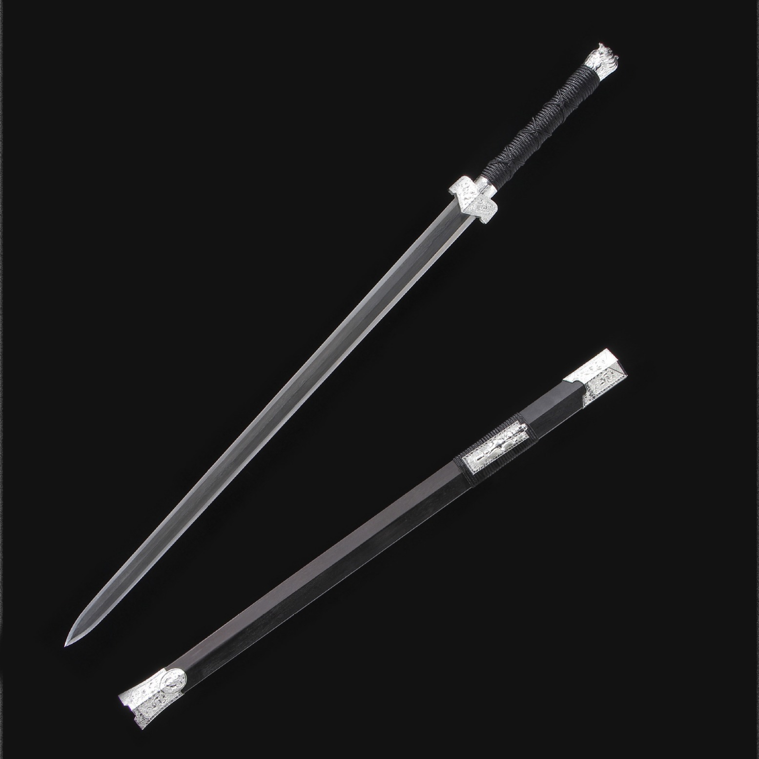 Pedang Longquan Junyan, pedang tradisional naga perak dan Phoenix Han pola delapan sisi baja senjata dingin pedang logam tidak terbuka pisau