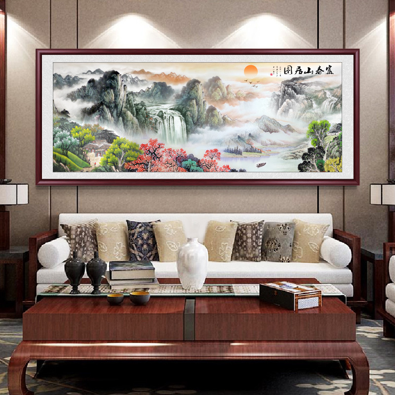 Iyun gambar tempat tinggal gunung ruang tengah lukisan gantung latar belakang dinding kantor lukisan dekoratif tradisional Cina lukisan pemandangan lukisan semprot gaya Cina baru