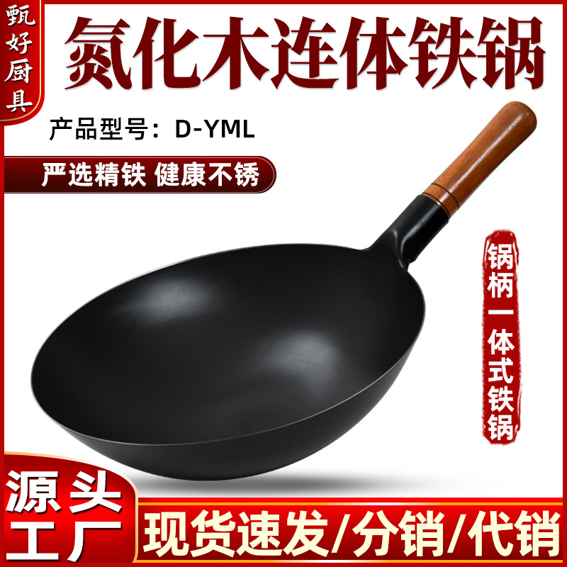 Grosir pot besi halus kuno tradisional wok tidak dilapisi pasar malam jualan komersial matang pot besi bulat bawah wajan rumah tangga