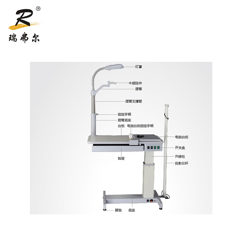Peralatan optometri kacamata multifungsi, meja kombinasi optometri otomatis meja inspeksi optometri dan meja pengangkat kursi