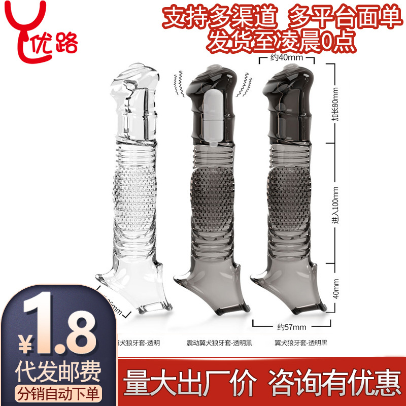 Sarung Kulit Gigi Serigala Anjing Sayap Pria Sarung Kristal Ekstra Panjang Pakai Penis Berongga Set Perlengkapan Seks Seks Seks untuk Pasangan