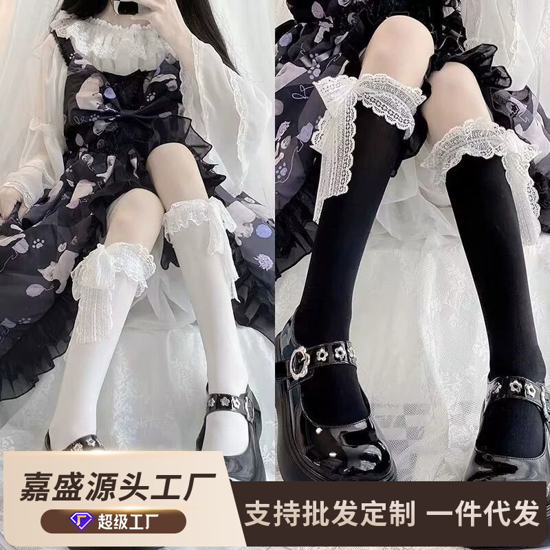 Jk Jepang kaus kaki lolita renda ramping wanita ikatan simpul lolita kaus kaki setengah betis musim semi, musim gugur dan musim dingin