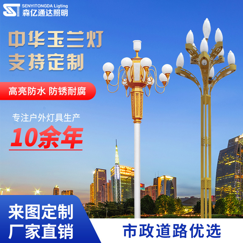 Delapan garpu sembilan api luar ruangan lampu Magnolia tiang tinggi multi-kepala lampu jalan tiang tinggi jalan persegi pencahayaan rekayasa kota lampu Magnolia