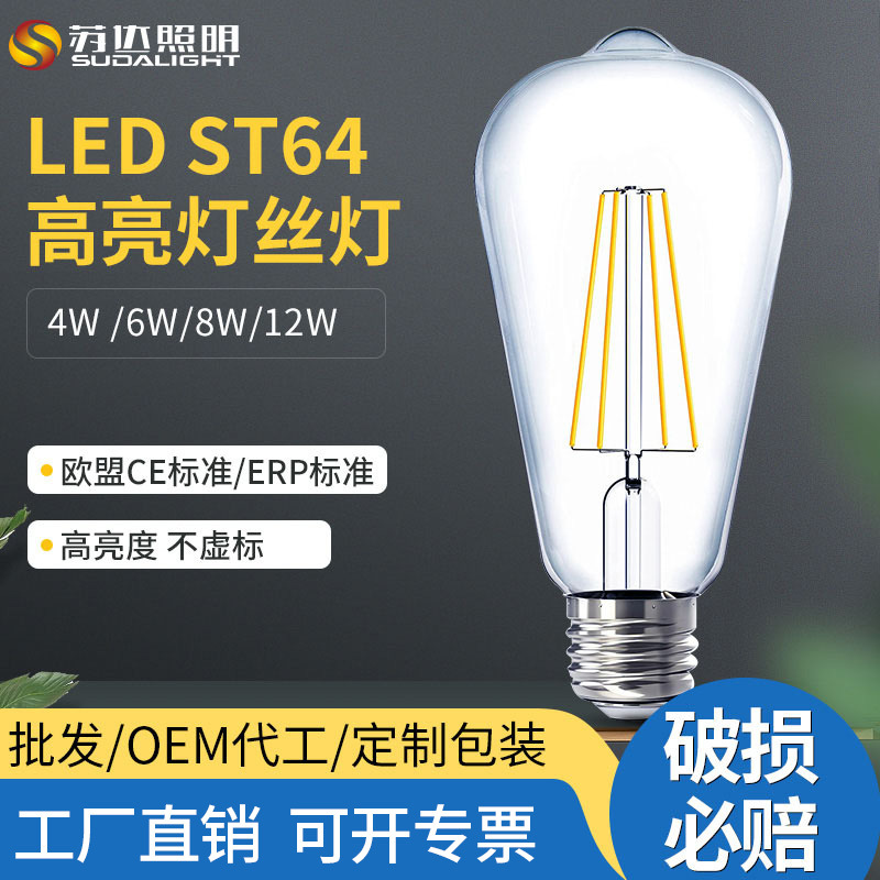 Lampu filamen LED ST64 Edison retro hemat energi bohlam lampu mulut sekrup E27 berbentuk tetesan air lampu dekoratif super terang.