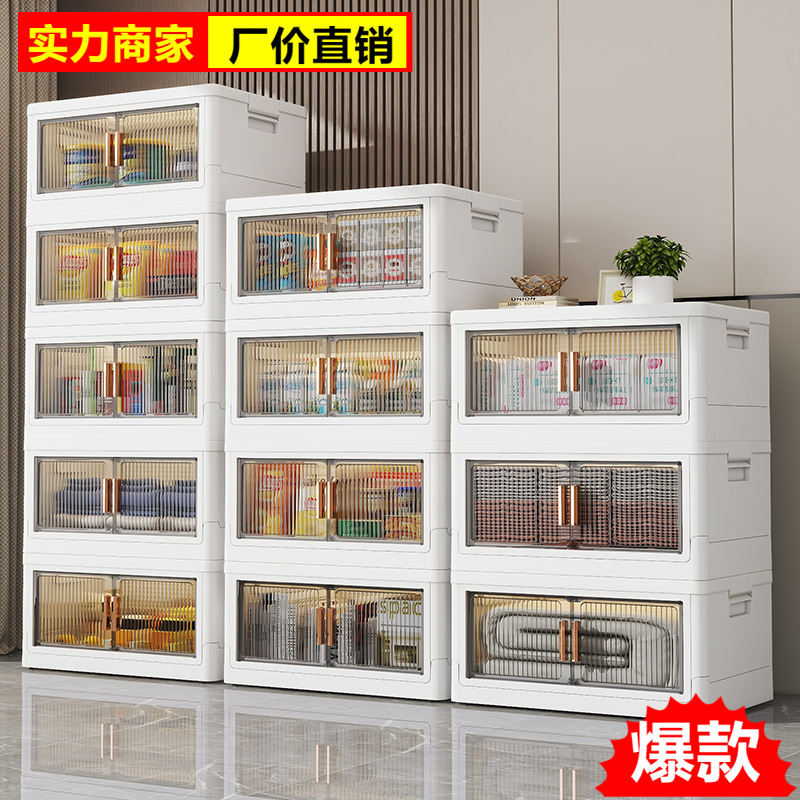 Kotak penyimpanan pakaian, kotak penyimpanan baju mainan rumah tangga, kabinet penyimpanan plastik lipat magnetik dua pintu