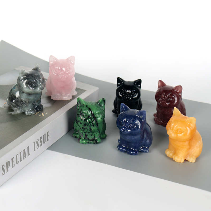 Grosir dekorasi hewan desktop rumah kucing polesan batu mentah kristal ukir kucing kristal alami