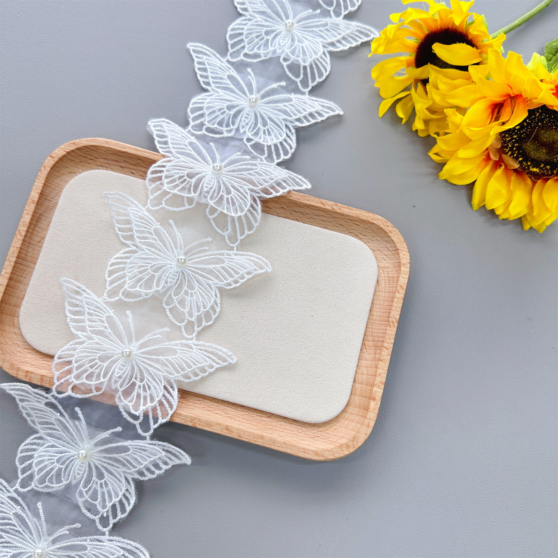 Dalam stok organza putih kupu-kupu dua lapisan bordir renda pakaian rok DIY hiasan kepala aksesoris renda manik-manik kode bar