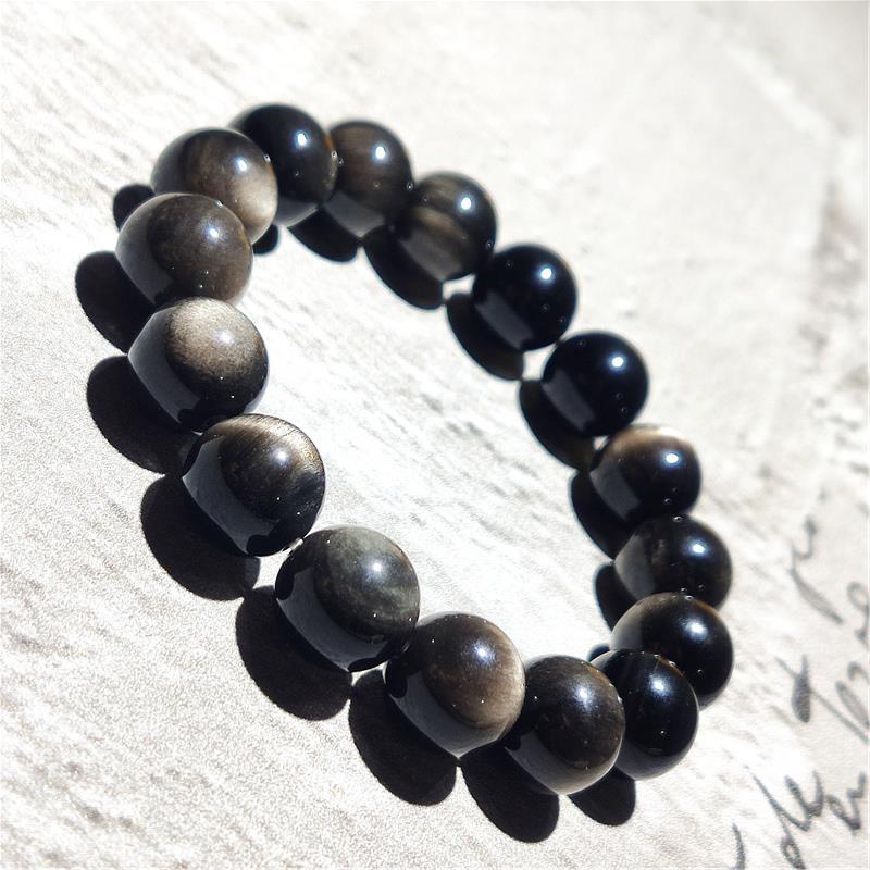 Gelang perak alami pria hantu mata kucing perak obsidian pria perhiasan butik gelang keberuntungan gaya pasangan
