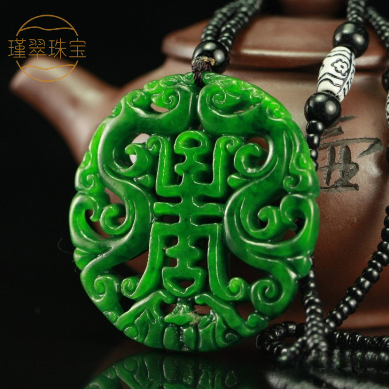 Liontin berongga giok Burma alami, naga besi hijau kering, zamrud naga ganda, liontin giok ulang tahun, rantai sweater