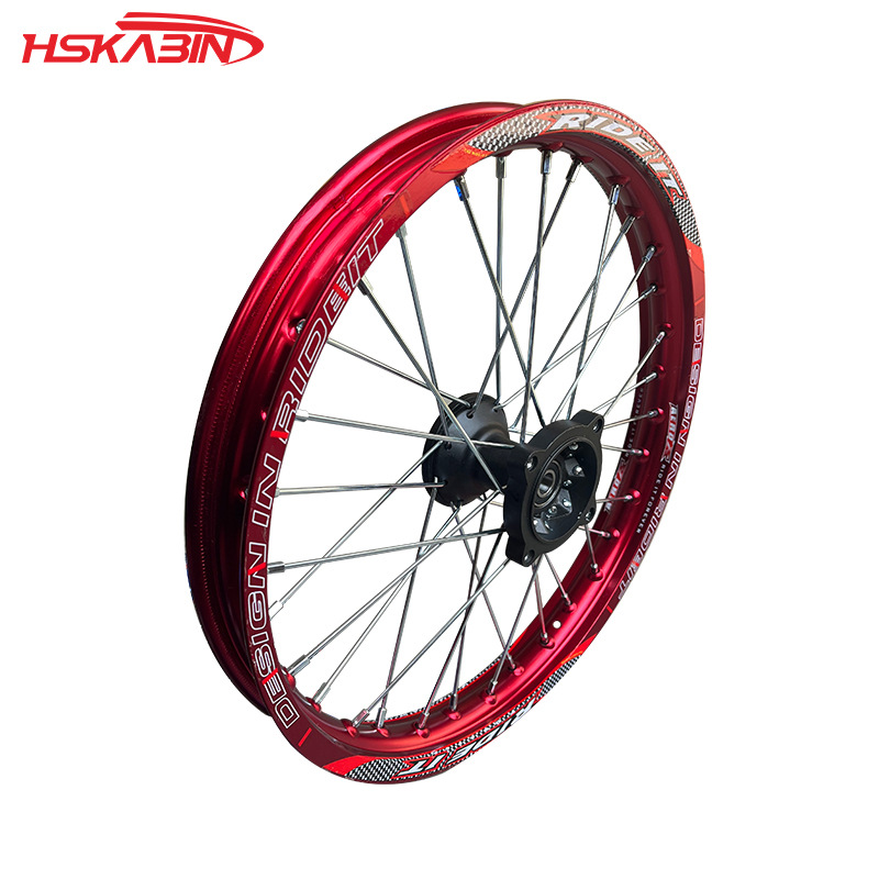 Sepeda motor Off-road 1.60x17 inci, pelek roda depan paduan aluminium hitam dengan stiker