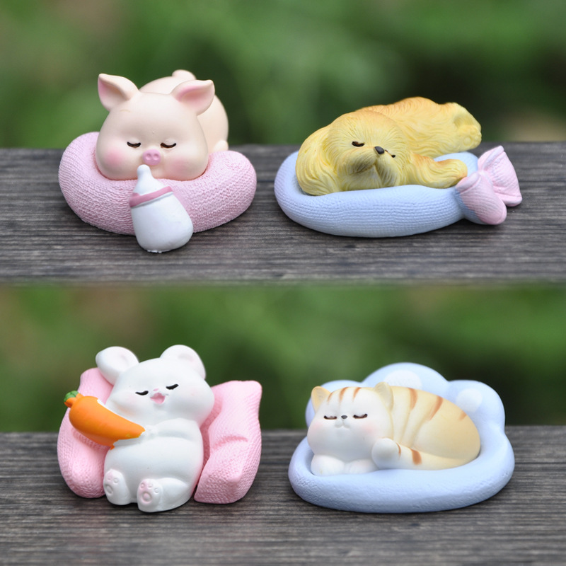 Boneka hewan resin, seri tidur trendi, boneka kelinci babi lucu, ornamen kecil desktop