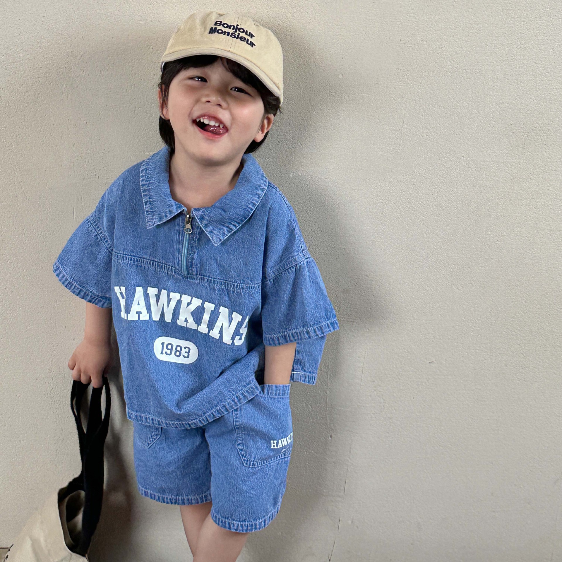 Set Denim Musim Panas Anak-anak Pakaian Musim Panas Anak-anak Laki-laki dan Perempuan Model Baru Cetak Huruf Celana Pendek Lengan Pendek Kasual Bayi Setelan Dua Potong
