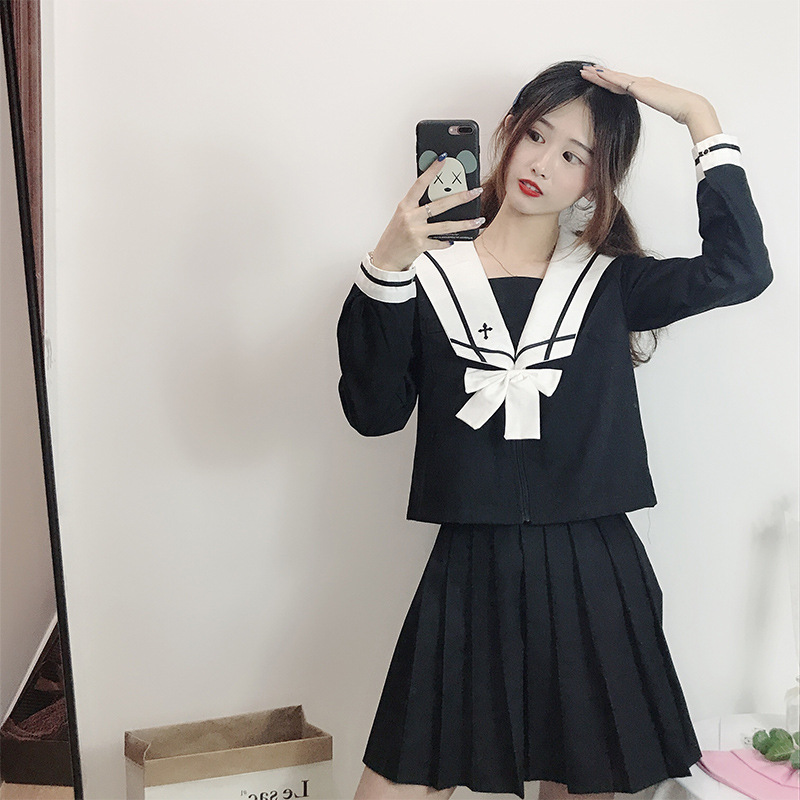 Baju siswa lintas Jepang, pakaian kelas sekolah gaya kuliah, setelan rok lipit seragam pelaut jk