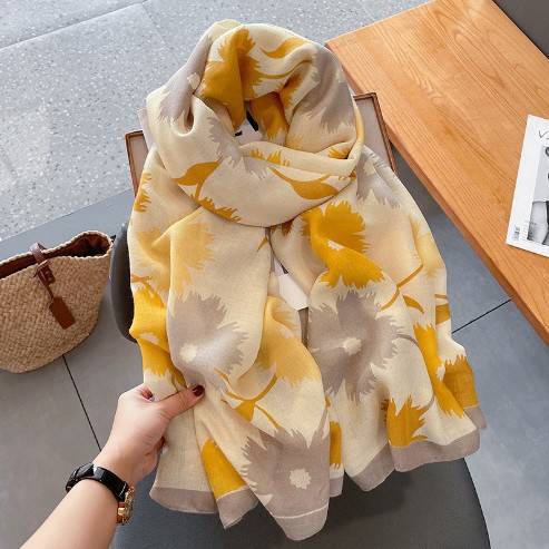 Syal katun dan linen wanita, selendang panjang Semua cocok pakaian luar tipis musim semi dan musim panas syal wanita musim gugur dan musim dingin gaya Korea bunga kecil