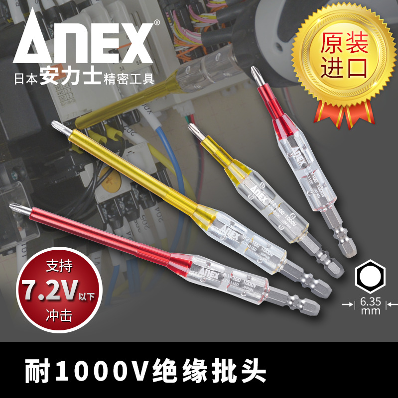 Anlishi merek ANEX (seri AZM) obeng obeng listrik terisolasi 1000V tahan tekanan tinggi obeng obeng silang
