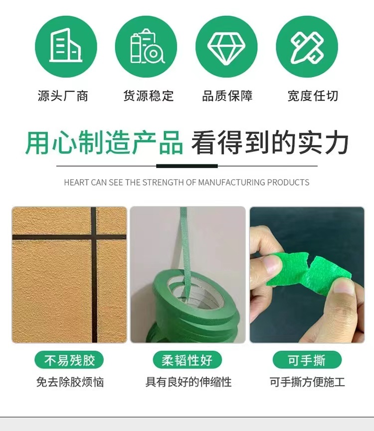Selotip hijau dengan daya rekat tinggi, tidak meninggalkan residu, dapat disobek dengan tangan, tahan terhadap suhu tinggi, mencegah penembusan, tidak merusak dinding, memberikan perlindungan untuk pe...