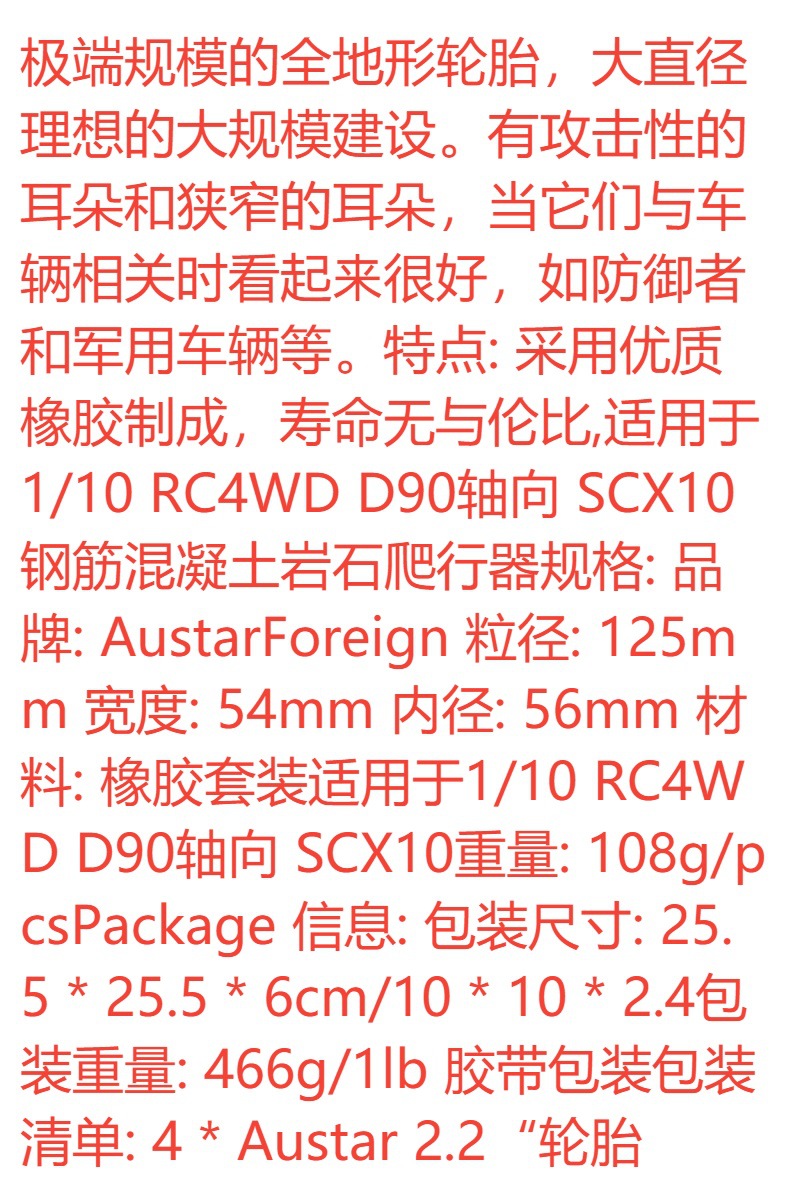 Ban karet aksial 1/10 RC4WD D90, skala 2.2 "125mm 1/10