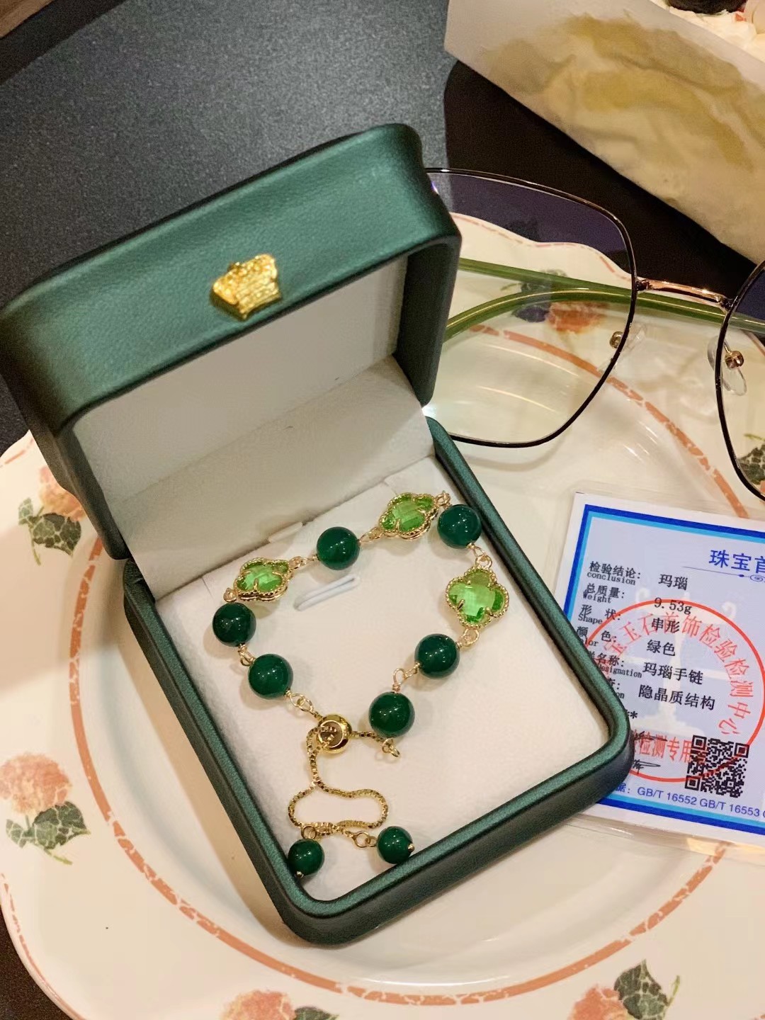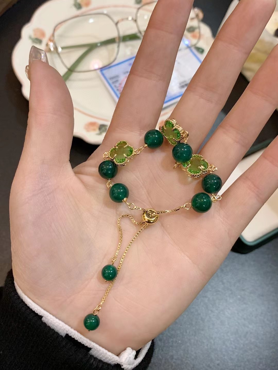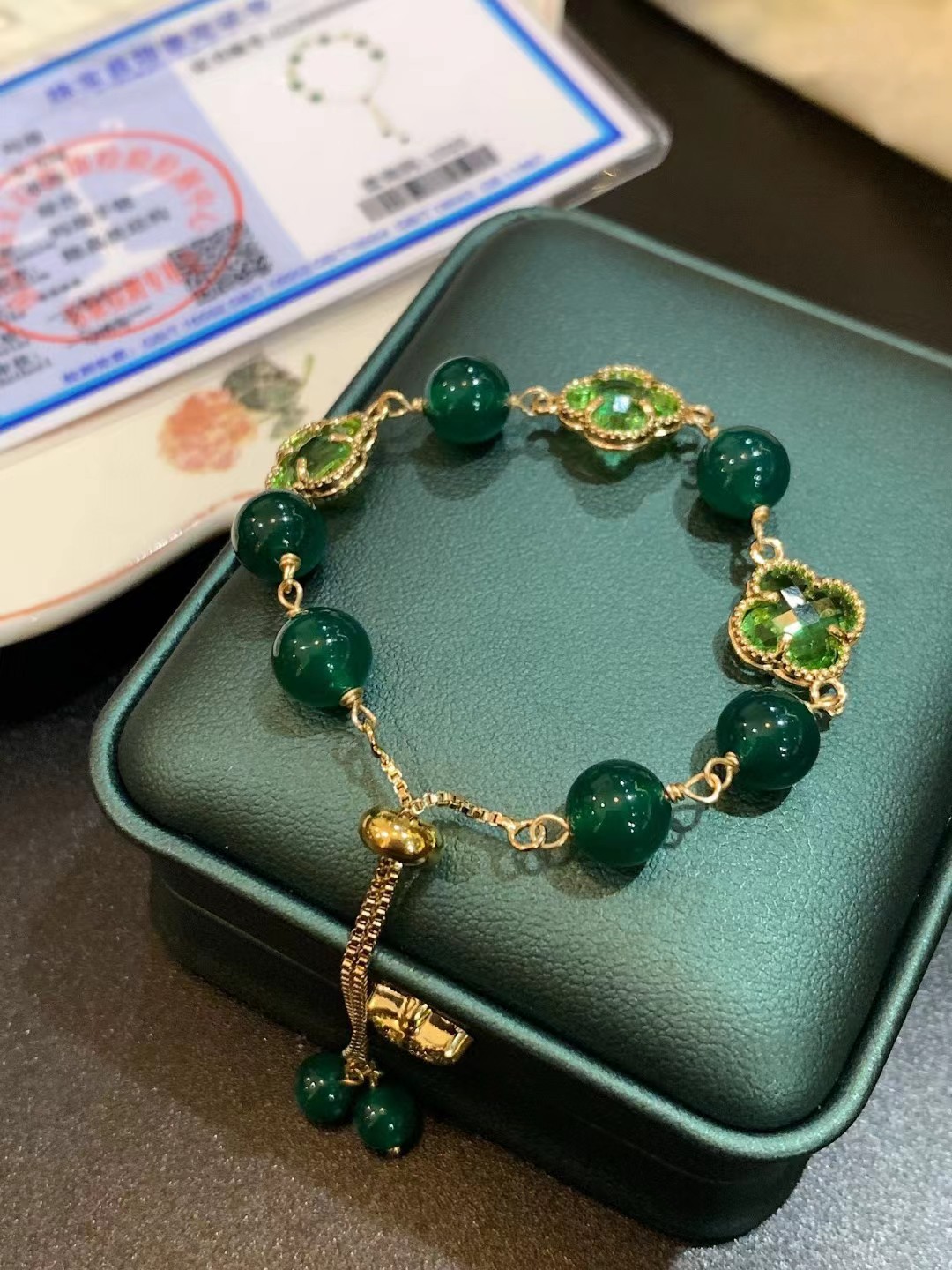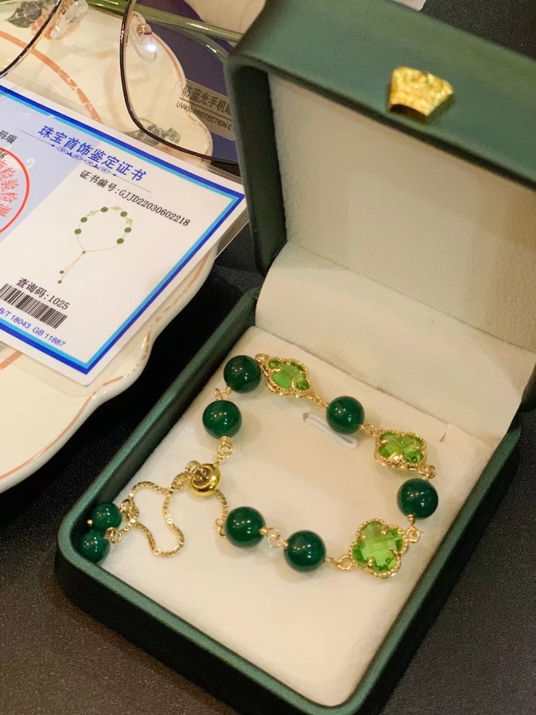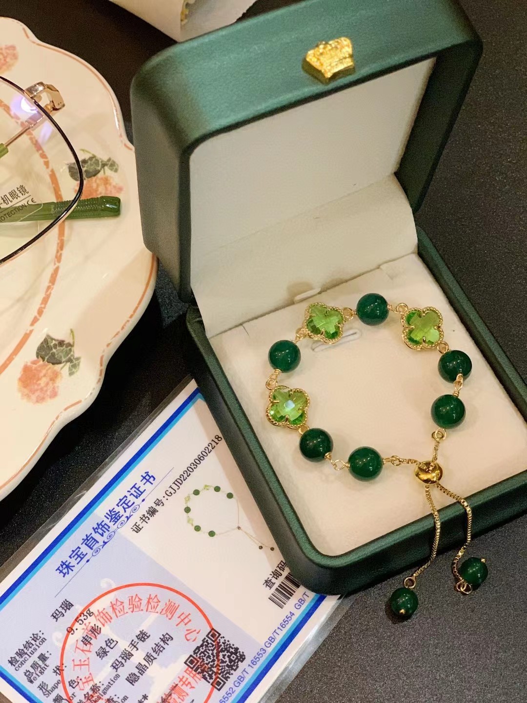 Gao Ding dengan sertifikat semanggi hijau batu akik gelang tarik kalsedon satu bagian pengiriman siaran langsung desain niche rasa selebriti online