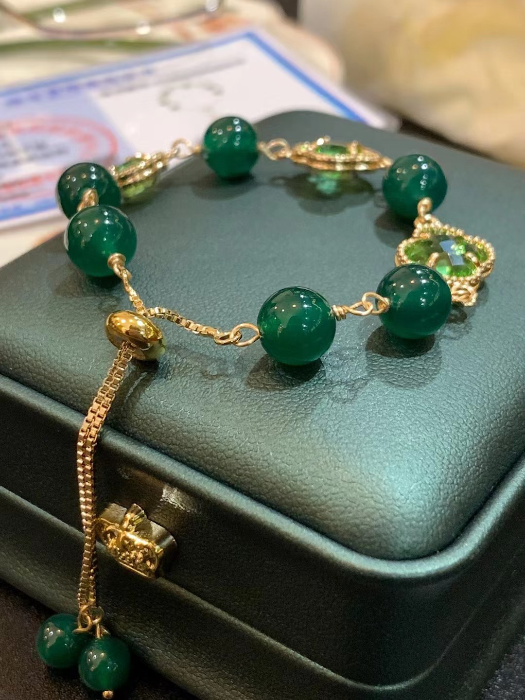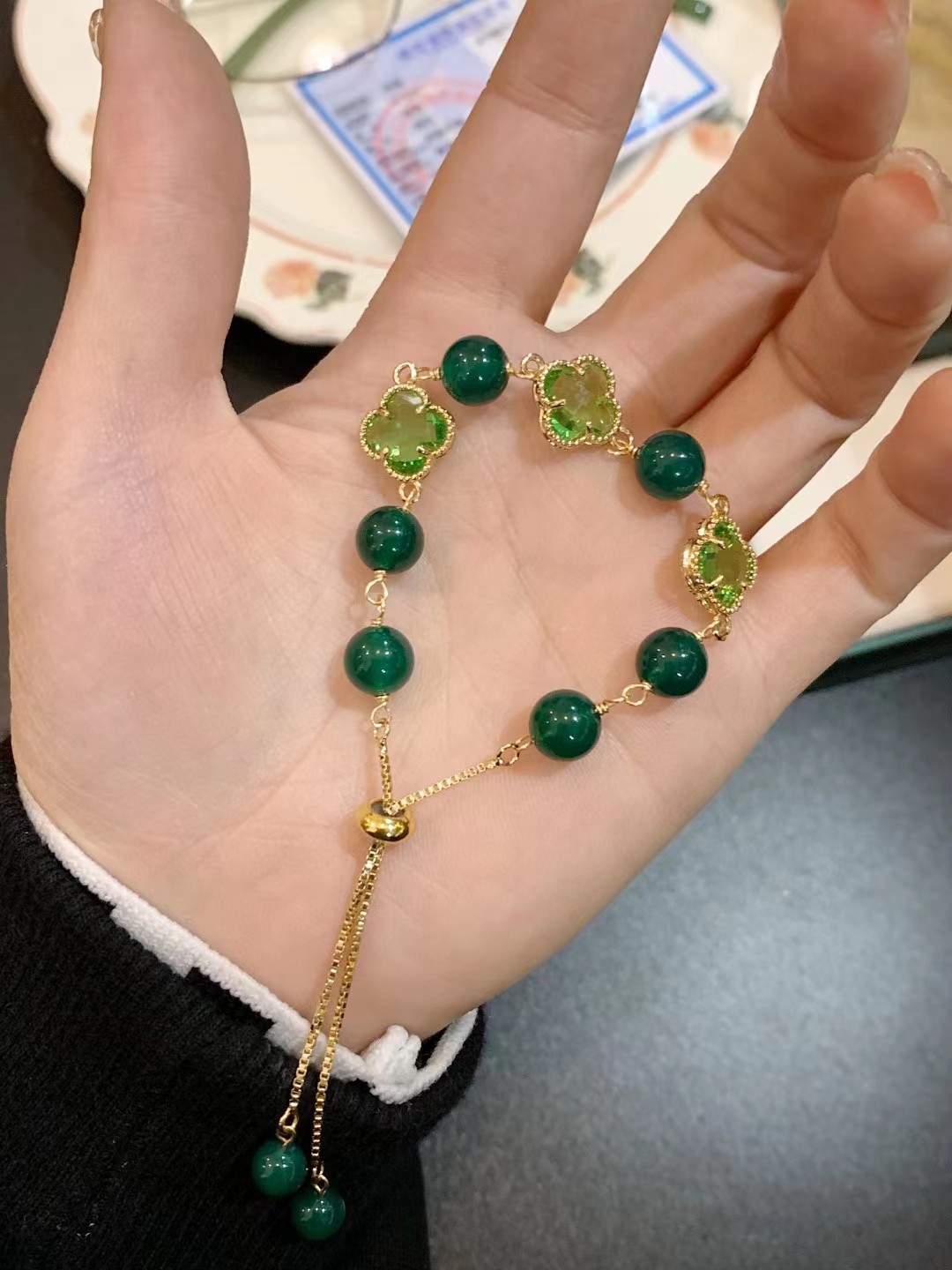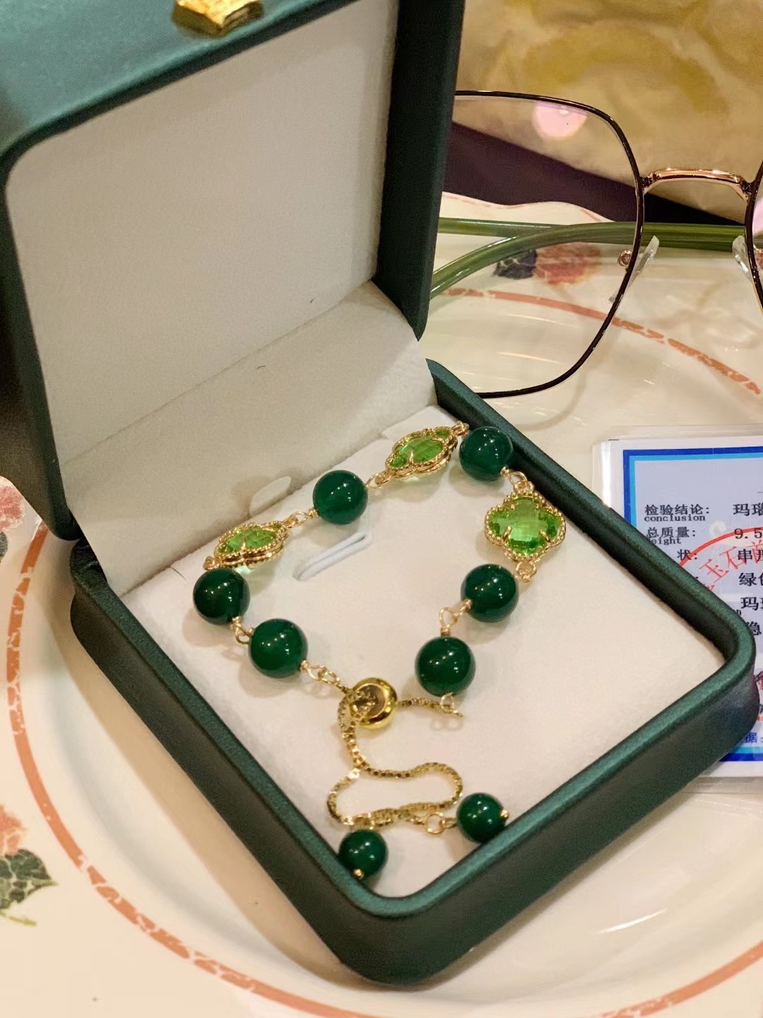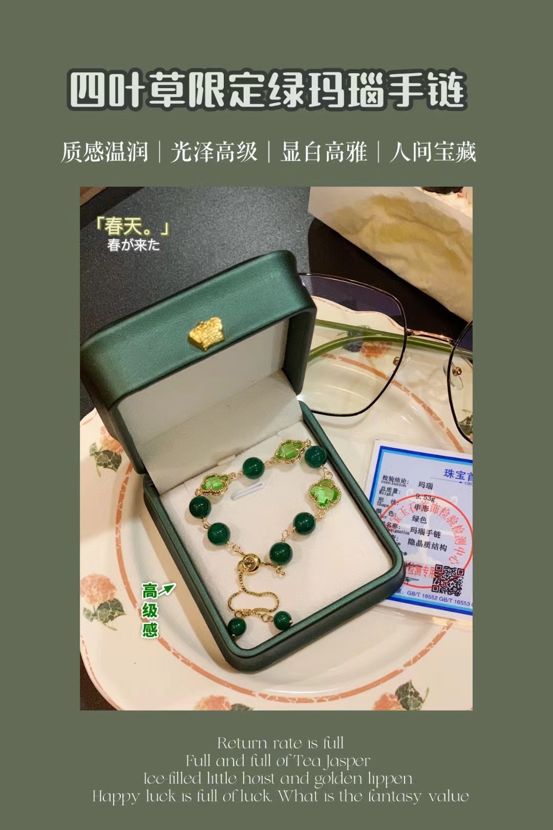Gao Ding dengan sertifikat semanggi hijau batu akik gelang tarik kalsedon satu bagian pengiriman siaran langsung desain niche rasa selebriti online