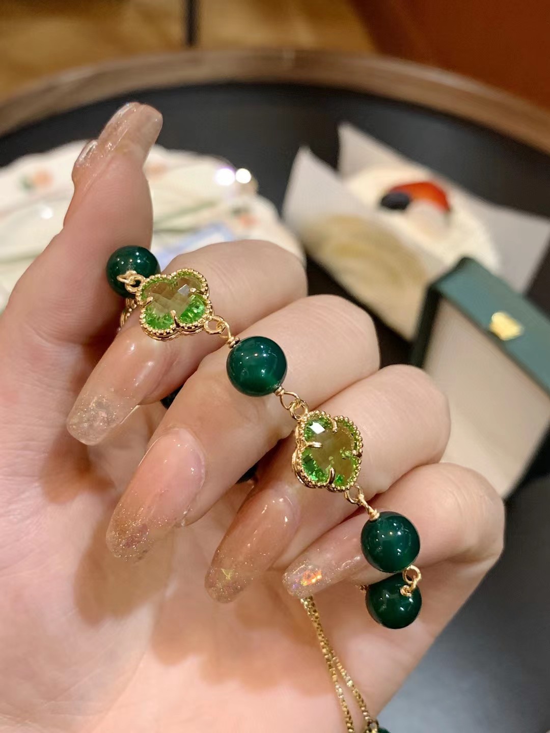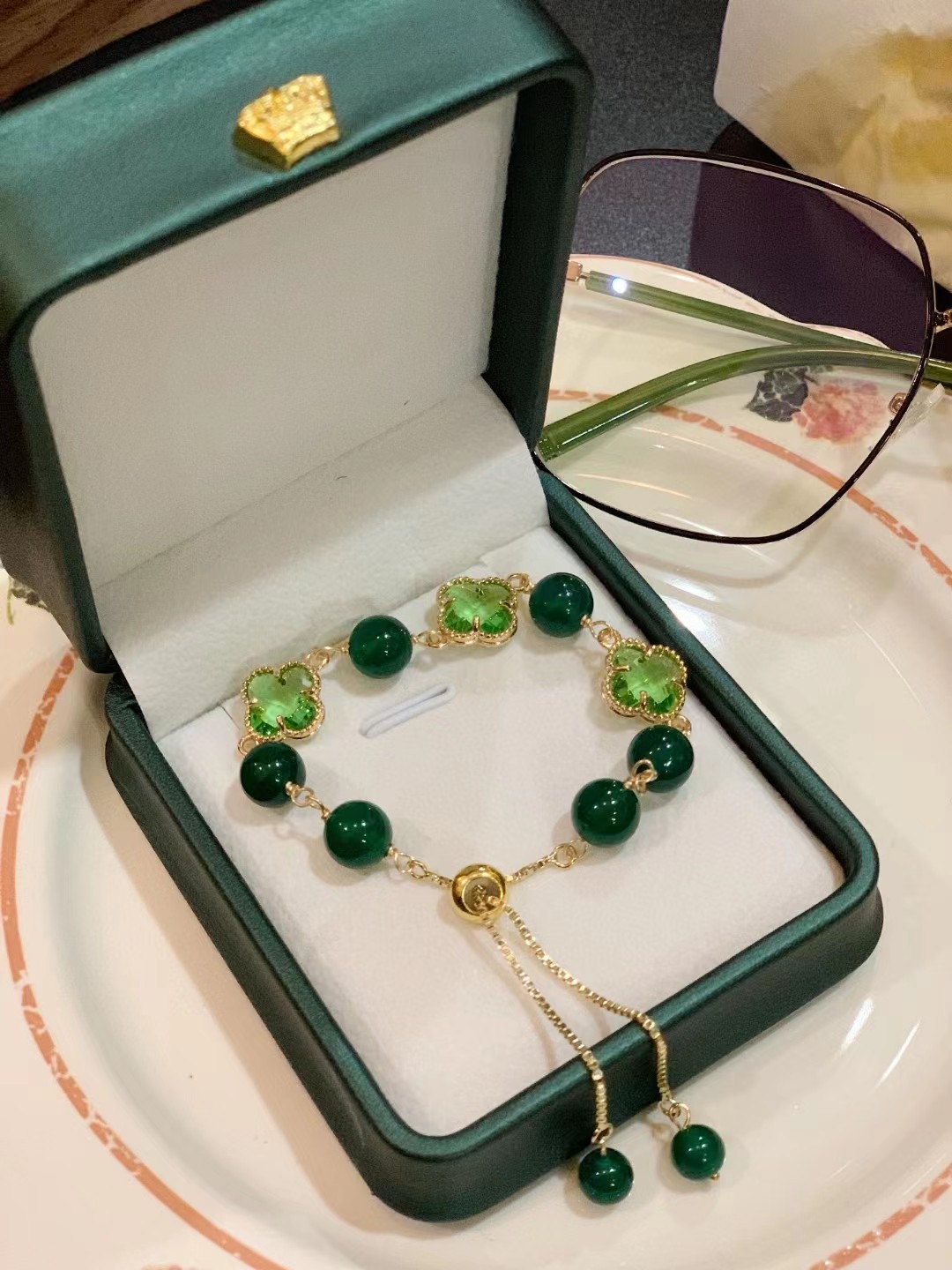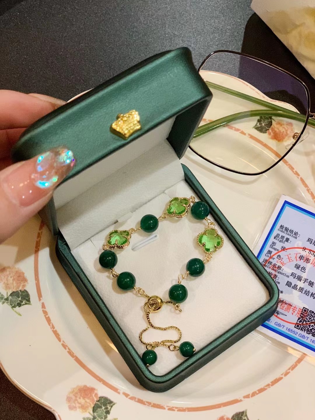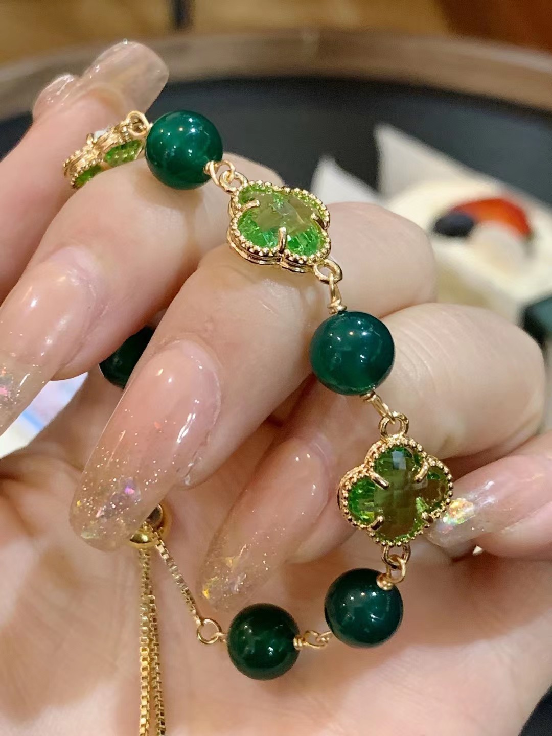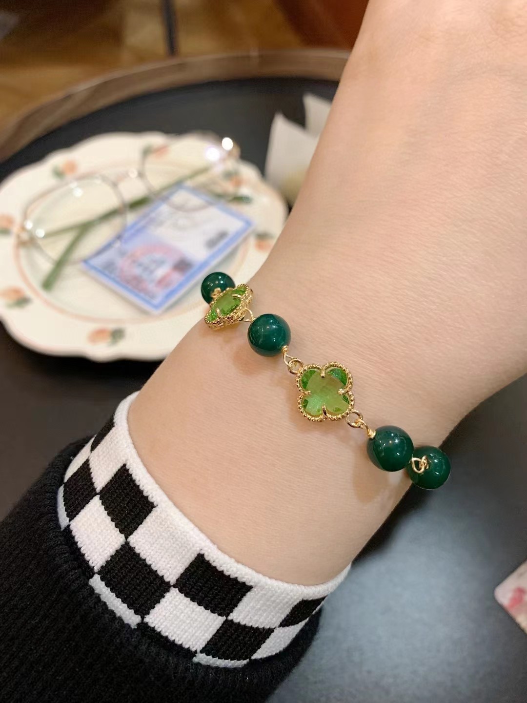 Gao Ding dengan sertifikat semanggi hijau batu akik gelang tarik kalsedon satu bagian pengiriman siaran langsung desain niche rasa selebriti online