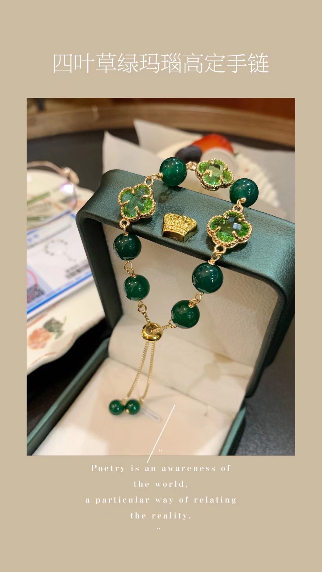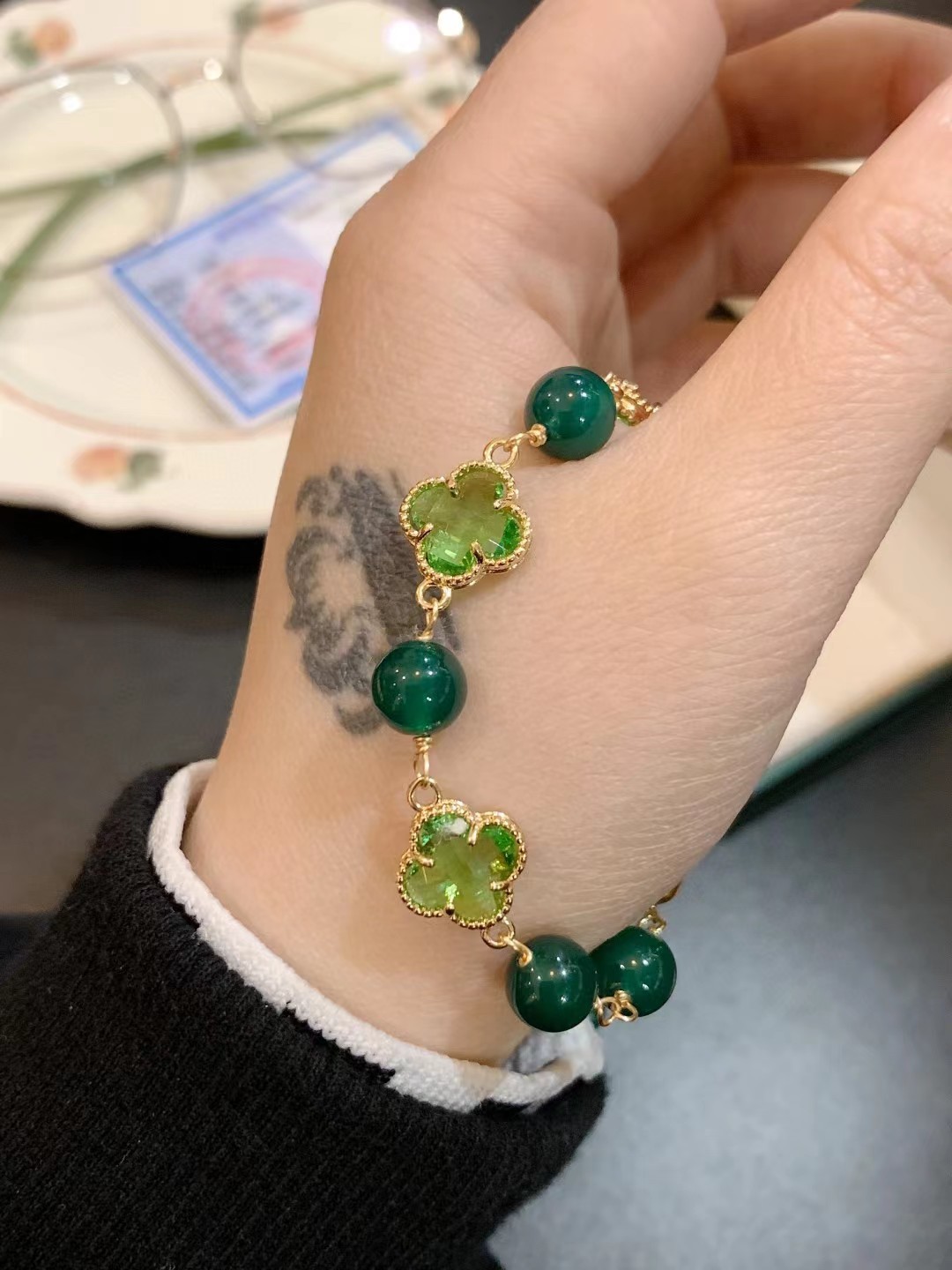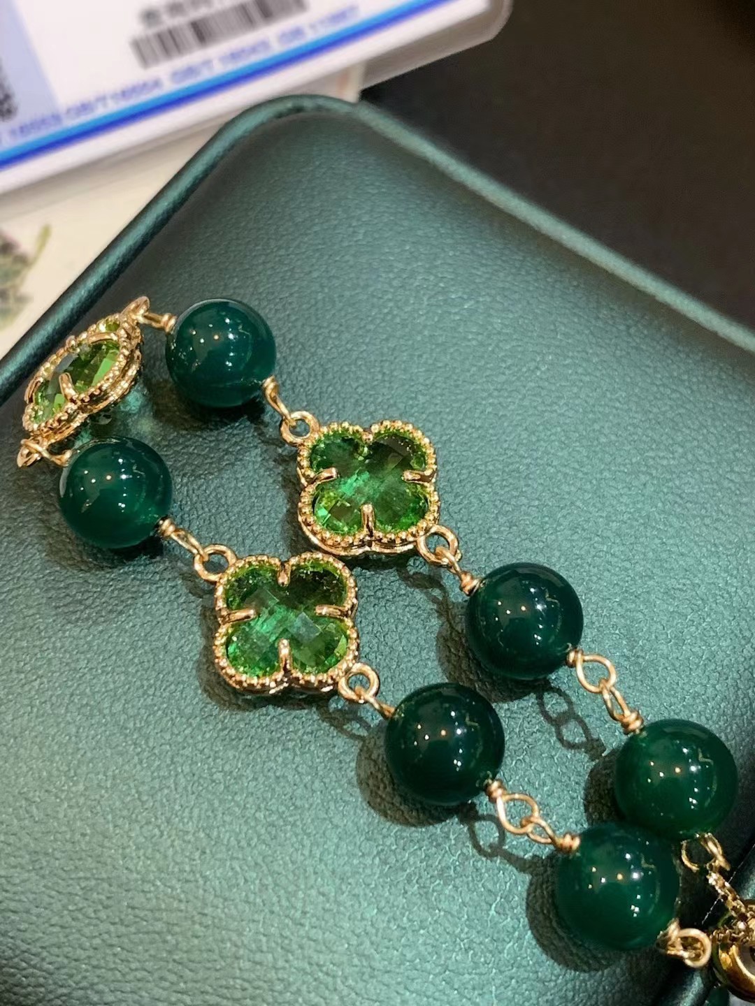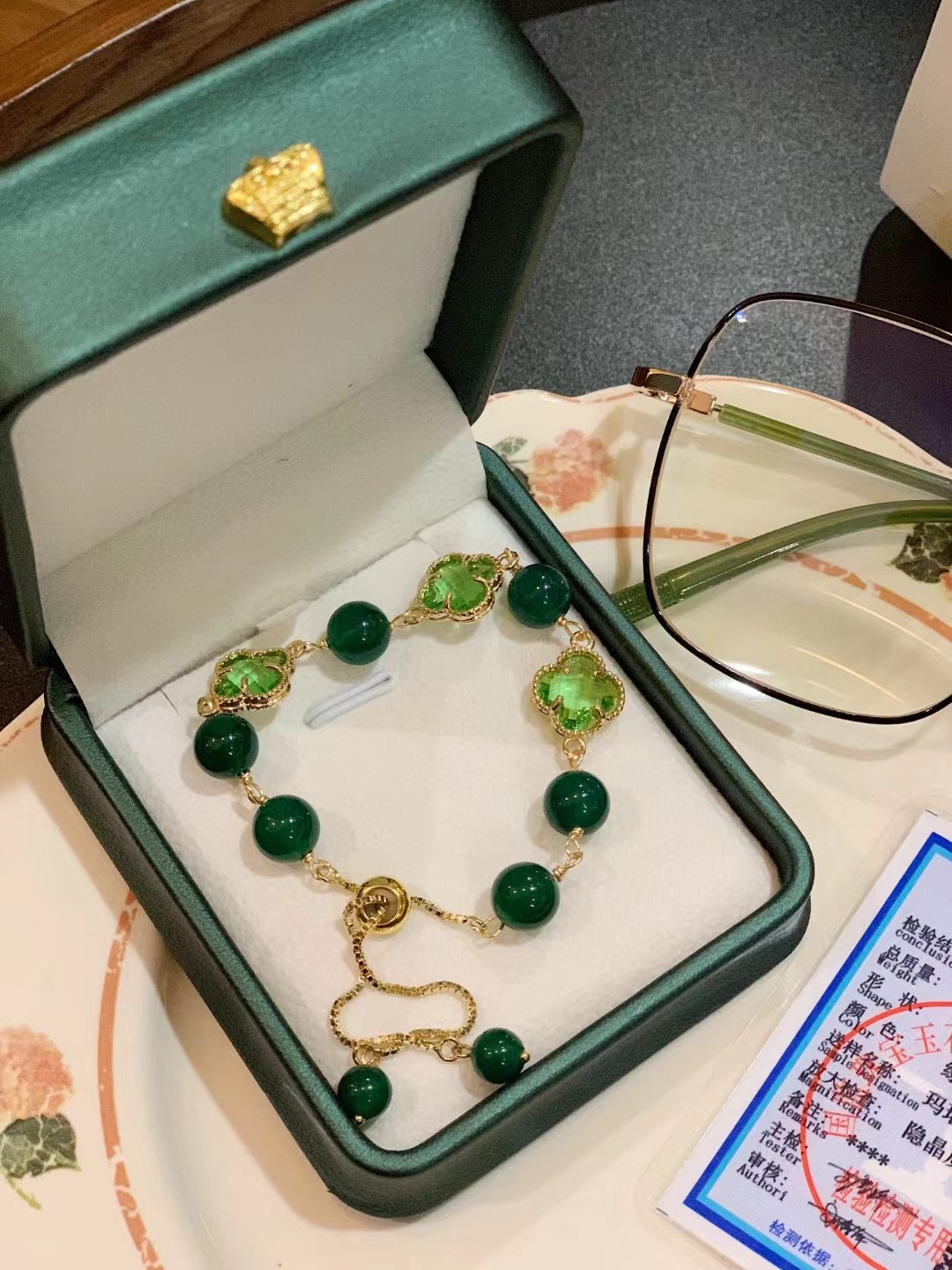 Gao Ding dengan sertifikat semanggi hijau batu akik gelang tarik kalsedon satu bagian pengiriman siaran langsung desain niche rasa selebriti online