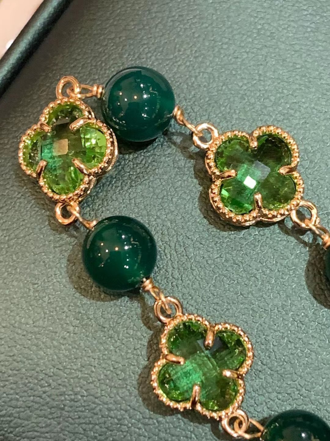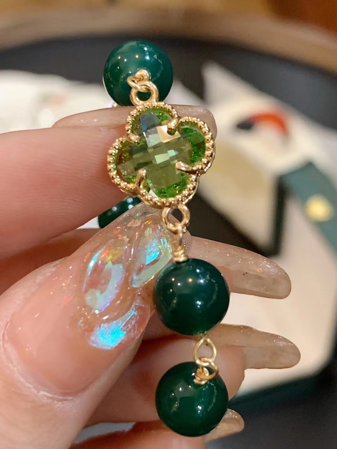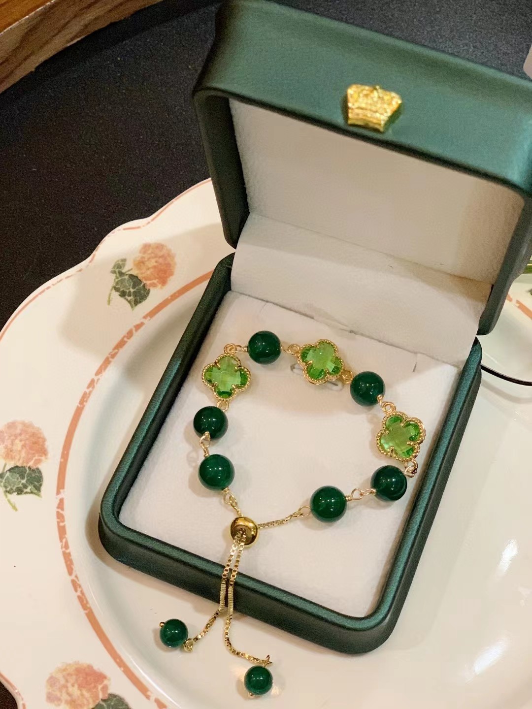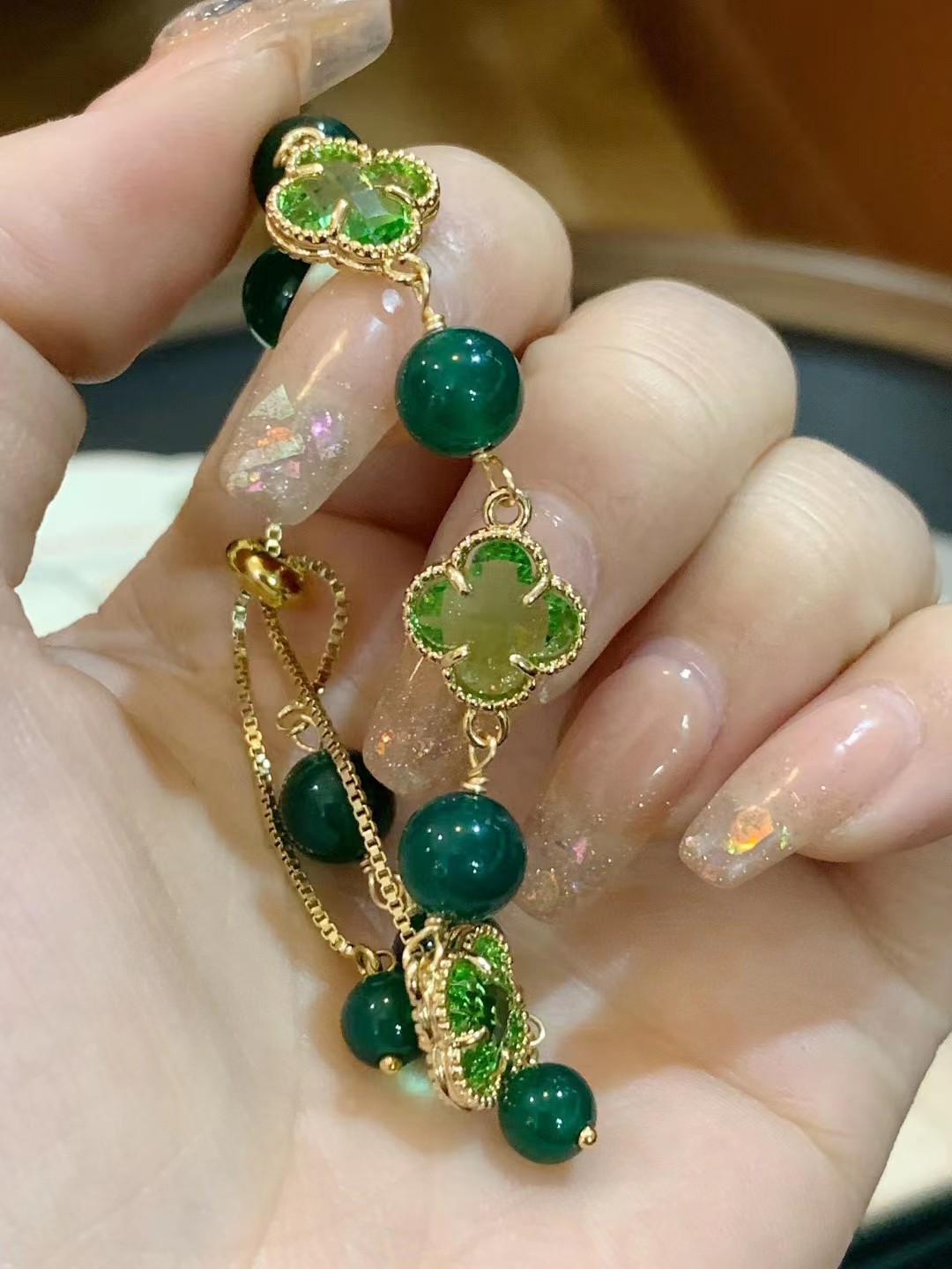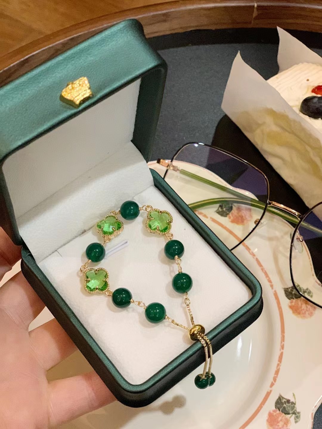 Gao Ding dengan sertifikat semanggi hijau batu akik gelang tarik kalsedon satu bagian pengiriman siaran langsung desain niche rasa selebriti online
