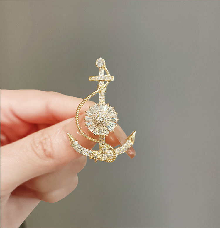 创意时尚船锚胸针女高级感小众高档精致胸花奢华气质西装别针配饰
