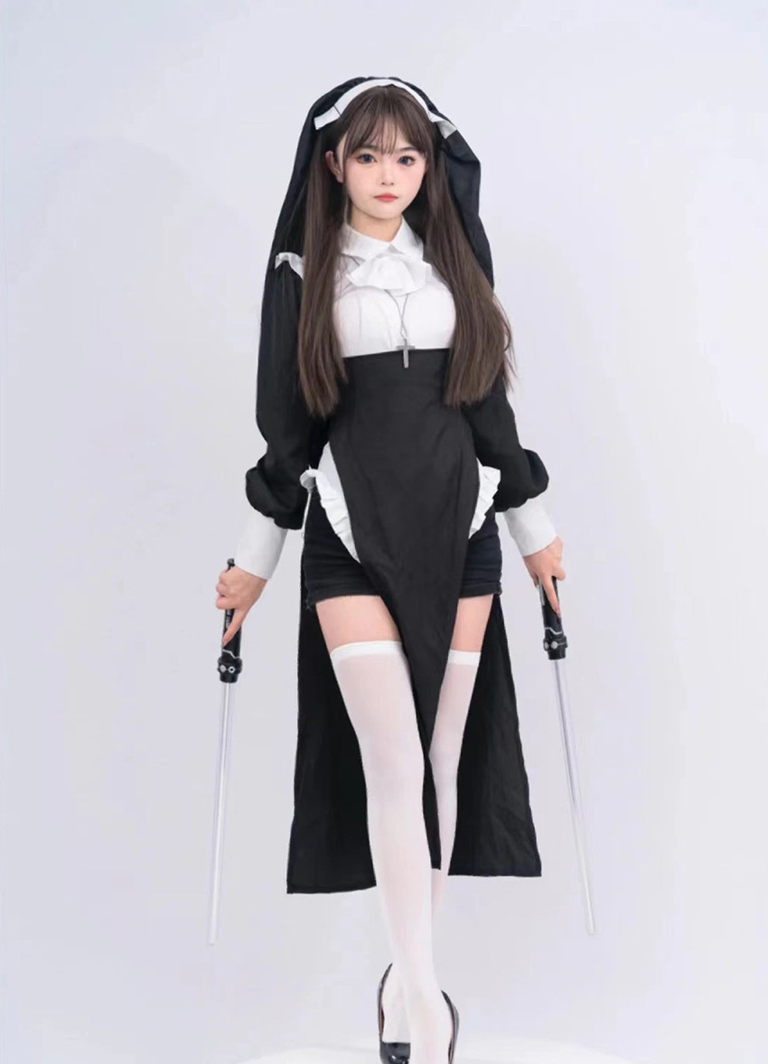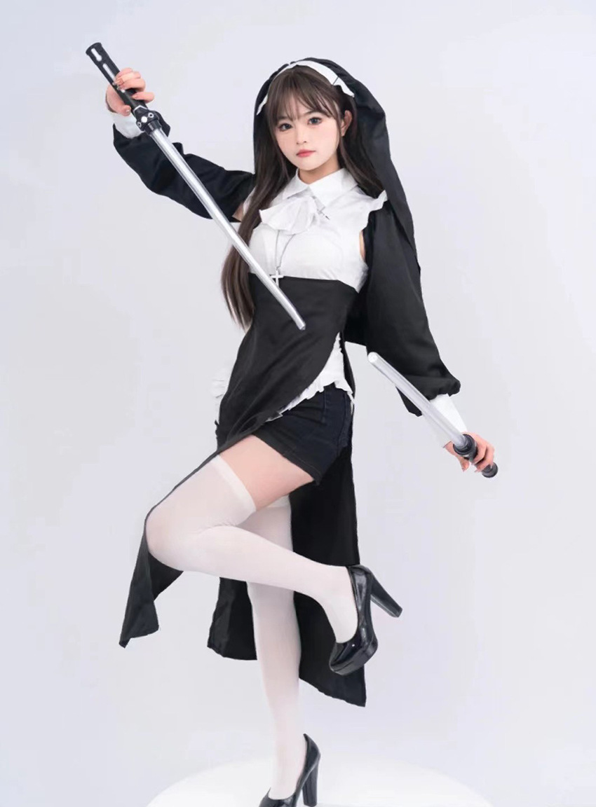 Stok tersedia nun cosplay seksi chowbie balutan silang seragam Halloween biarawati gaya yang sama
