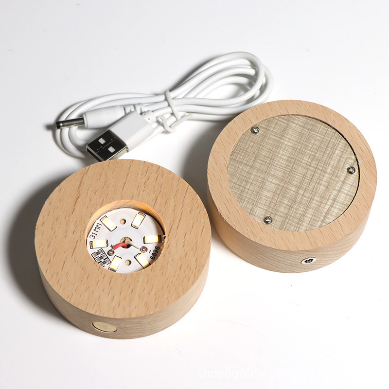 Penyangga lampu bola kristal DIY grosir dengan alas kayu solid, lampu malam bercahaya, lampu persegi warna-warni, lampu plastik isi ulang, cahaya hangat