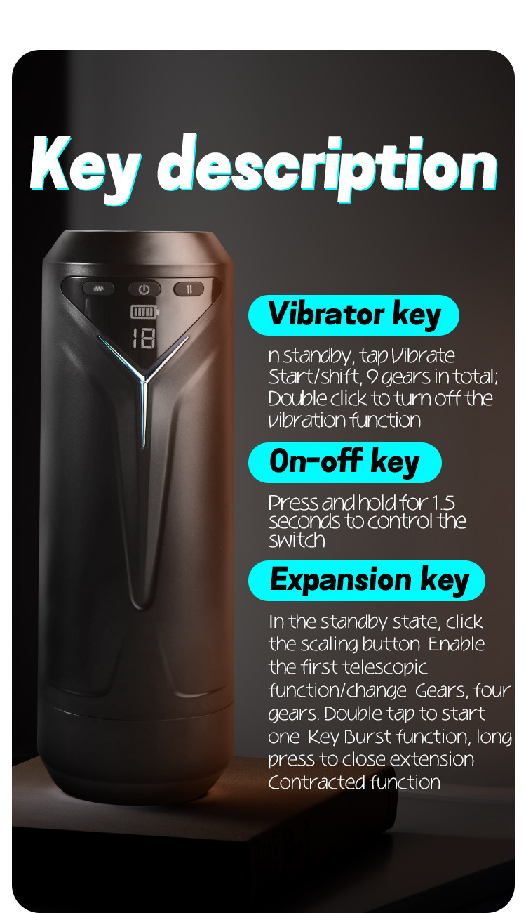 9频震动+4频仲缩+一键爆发+数字显示功能