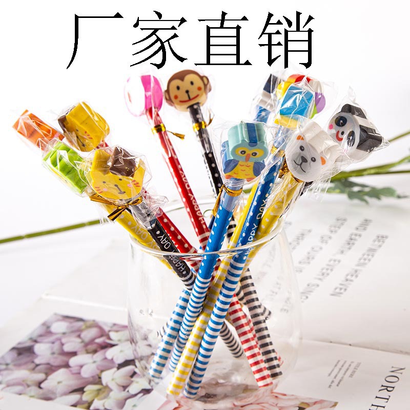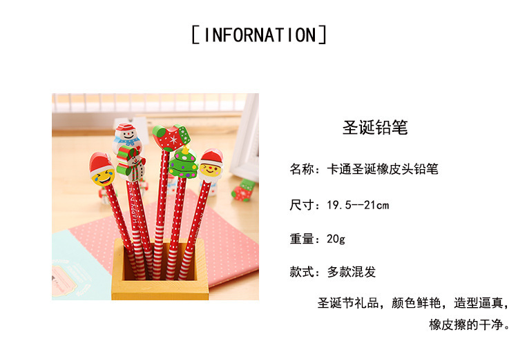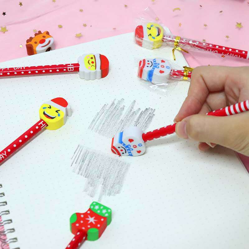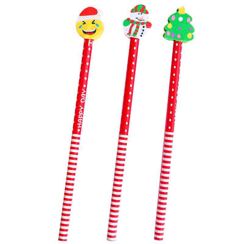 Pensil kartun HB hadiah liburan Natal, pensil khusus pelajar sekolah dasar dengan penghapus, alat tulis belajar anak-anak