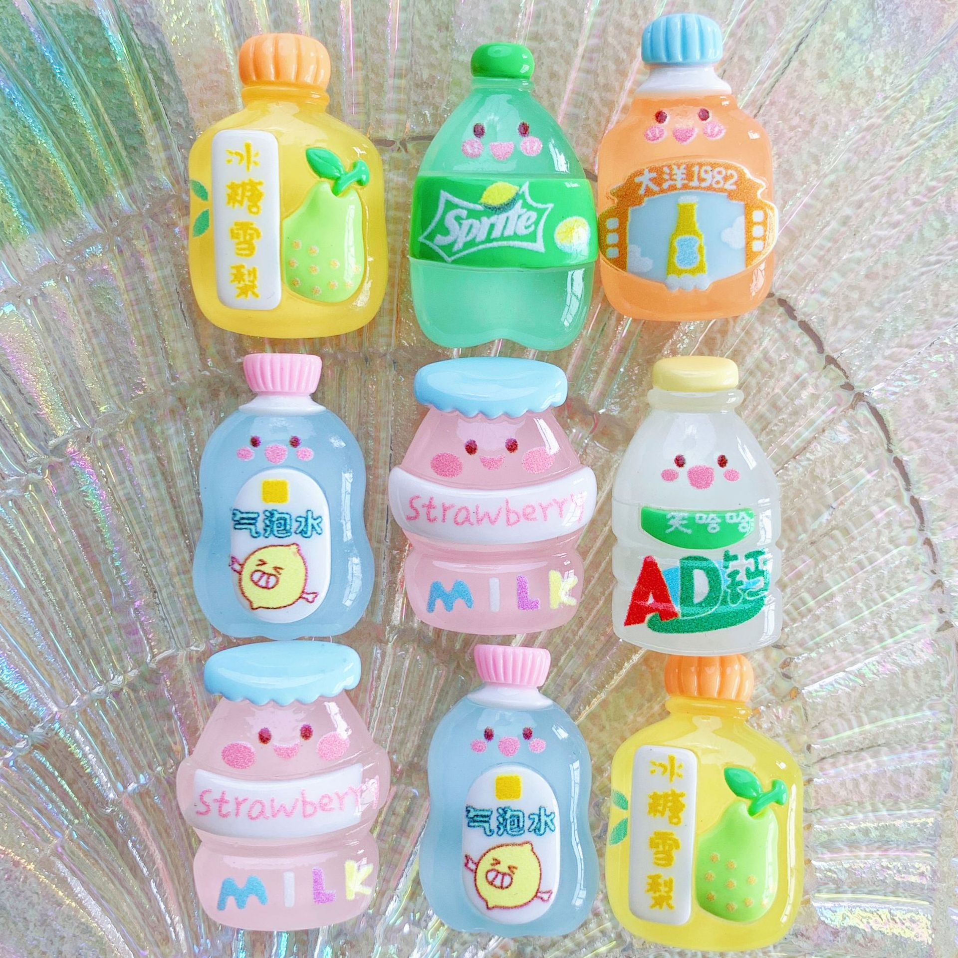 Aksesori resin minuman bercahaya botol makanan dan bermain jepit rambut sepatu lubang cangkang ponsel bahan aksesori alat tulis