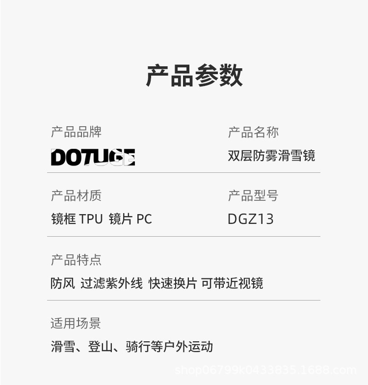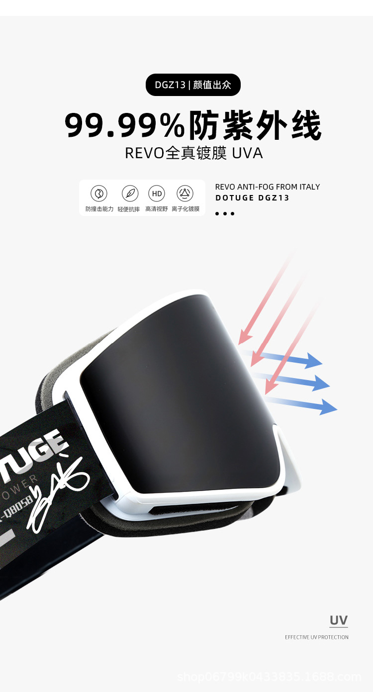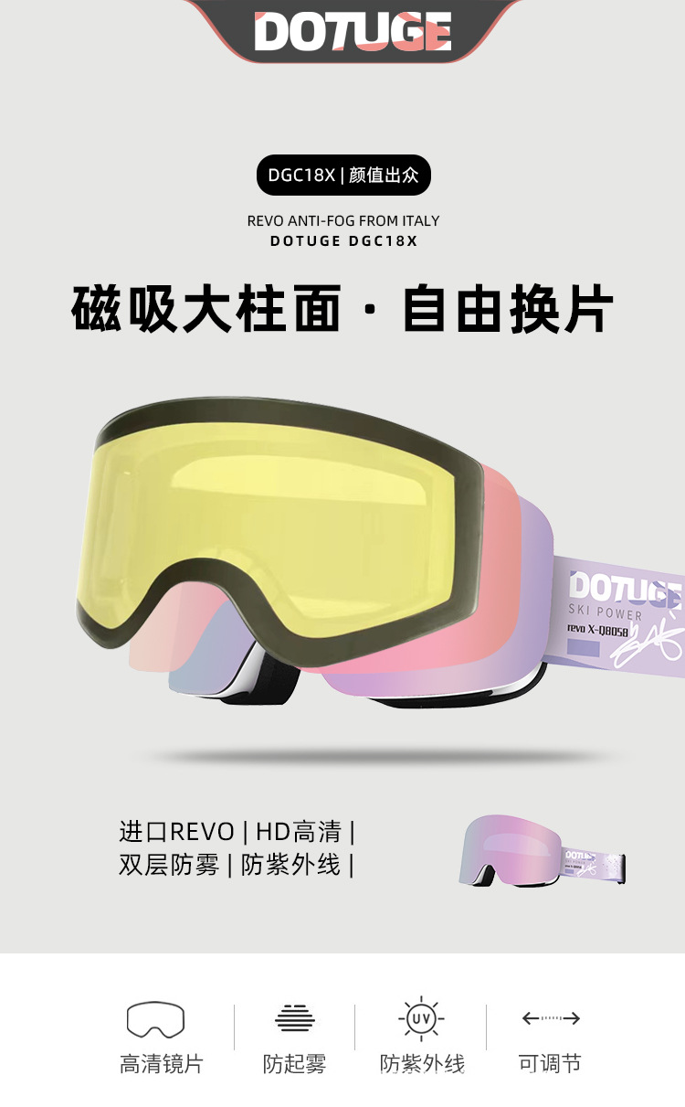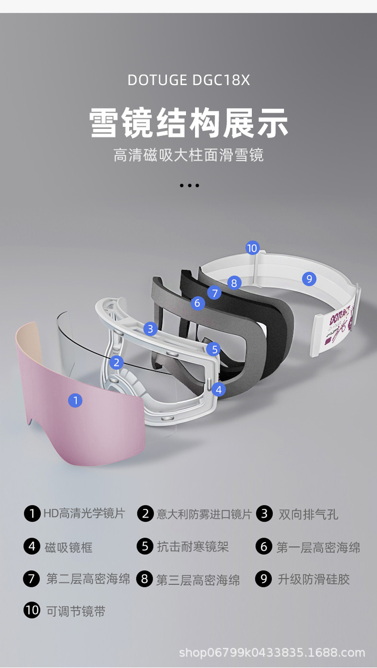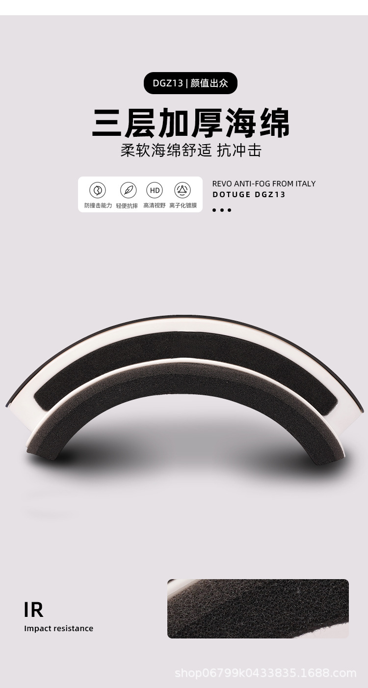 一:TPU镜框,REVO镀膜德国PC片,意大利双层防雾片,三层海绵,双面绒松紧带