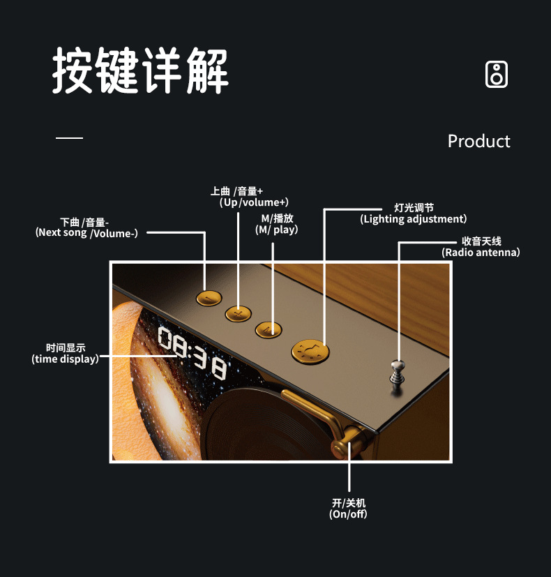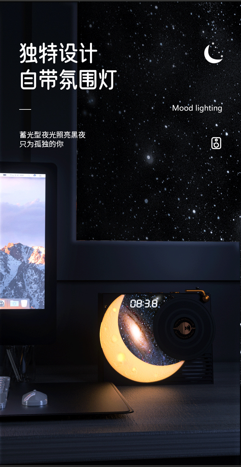 Beli pabrikan Wanren fan P1 speaker Bluetooth jam bulan pemutar rekaman vinil headlamp desktop audio retro