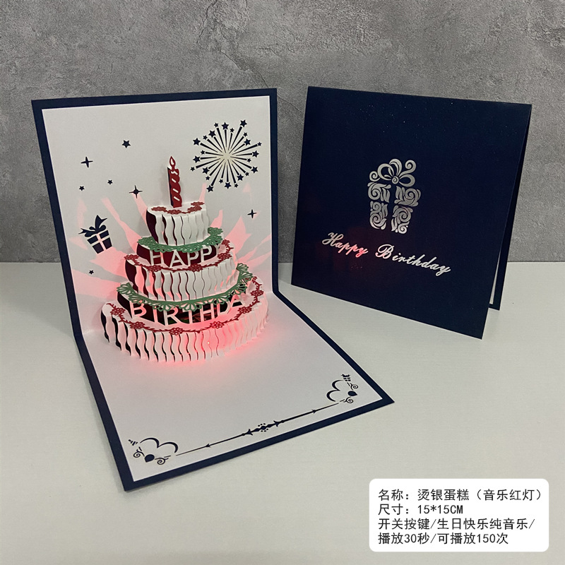 每张贺卡都有送信封+OPP包装,音乐贺卡可以播放150次左右