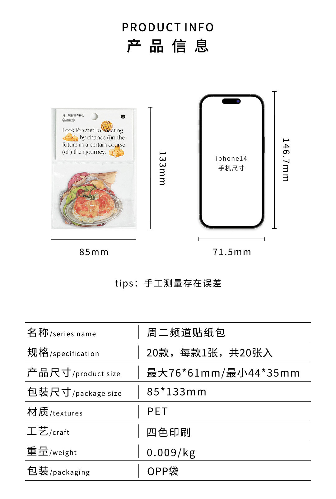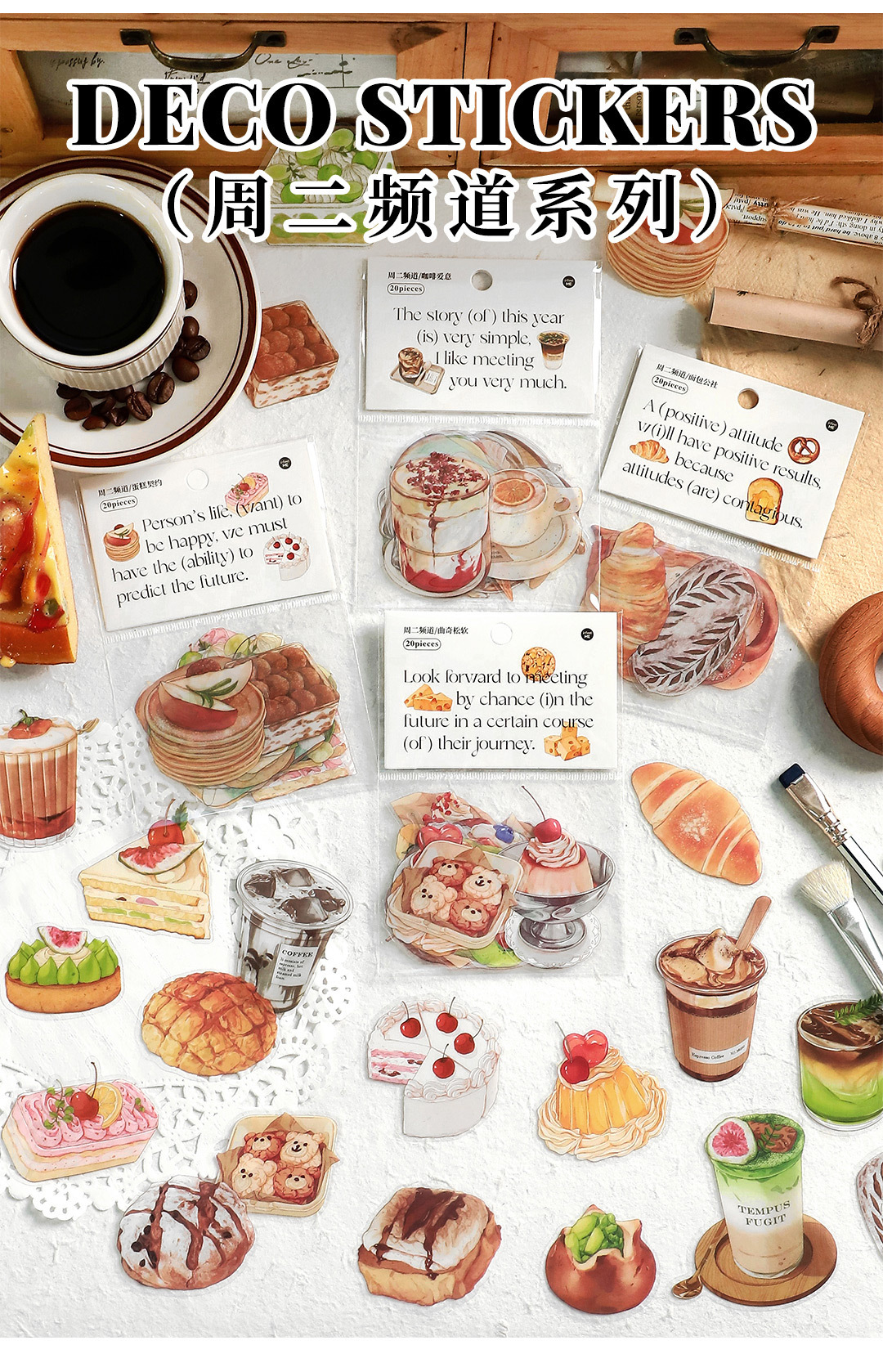 Infeel.Me Paket stiker hewan peliharaan, seri Selasa saluran stiker buku harian jurnal kue makanan penutup kartun Amerika