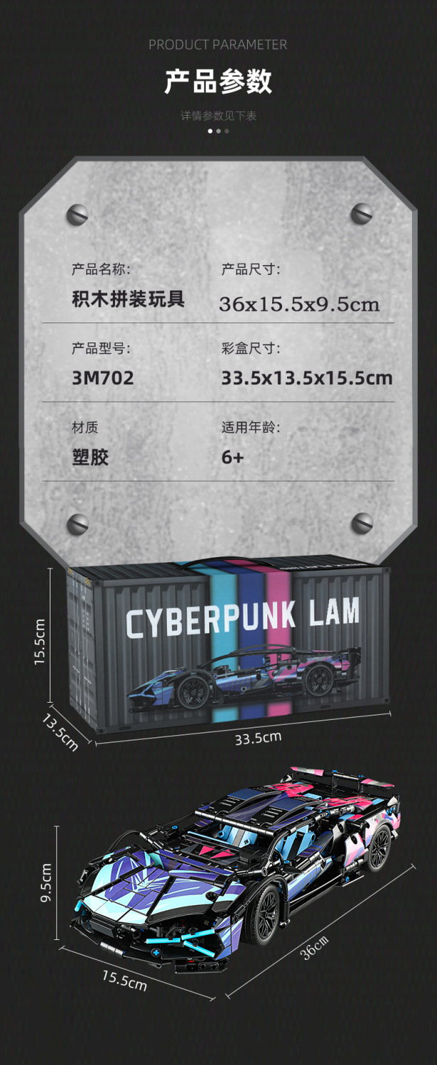 Kompatibel dengan batu bata LEGO Cyberpunk 911 Lamborghini mobil sport mainan anak-anak model mobil remote control