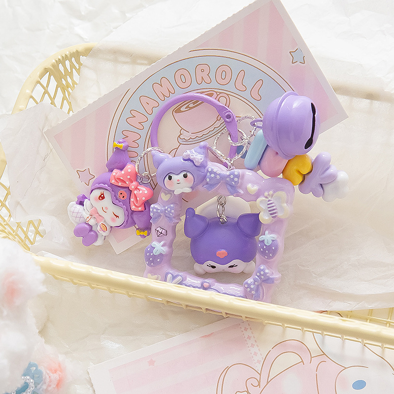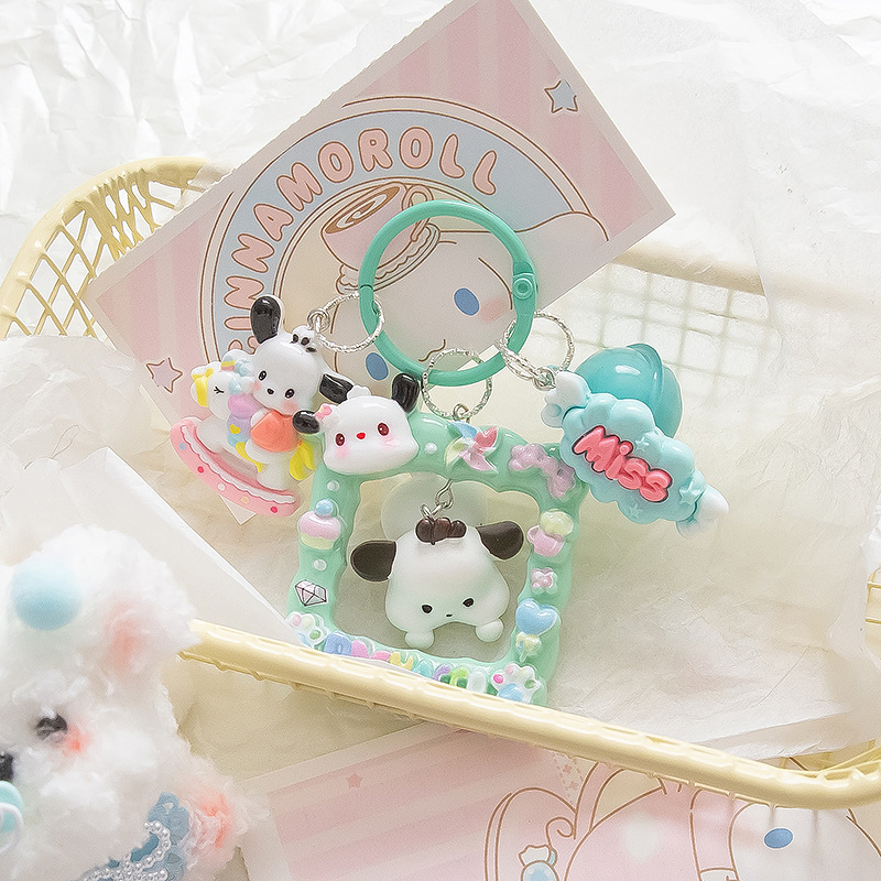 Bingkai foto kartun Sanrio baru liontin gantungan kunci resin boneka hewan anjing yuui berbaring tiga dimensi lucu
