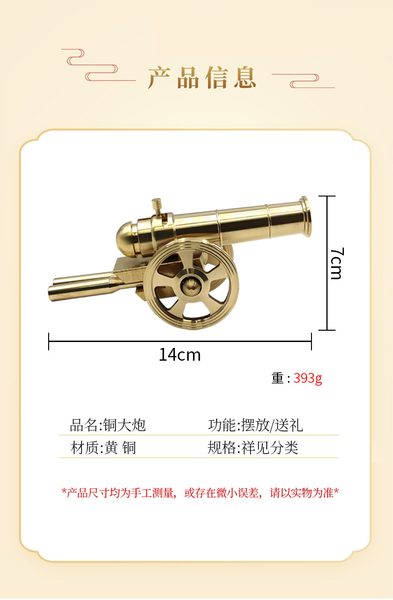 Meriam kuningan ukuran besar Dekorasi meriam Italia model feng shui meriam tembaga aksesori rumah mainan hadiah kecil