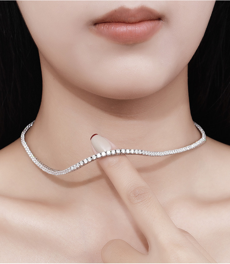 Kalung moissanite 6 titik 2,5 mm untuk wanita, perak 925, penuh berlian, kemewahan ringan, serbaguna, gaya unik, rantai tulang selangka elegan untuk musim gugur dan musim dingin.