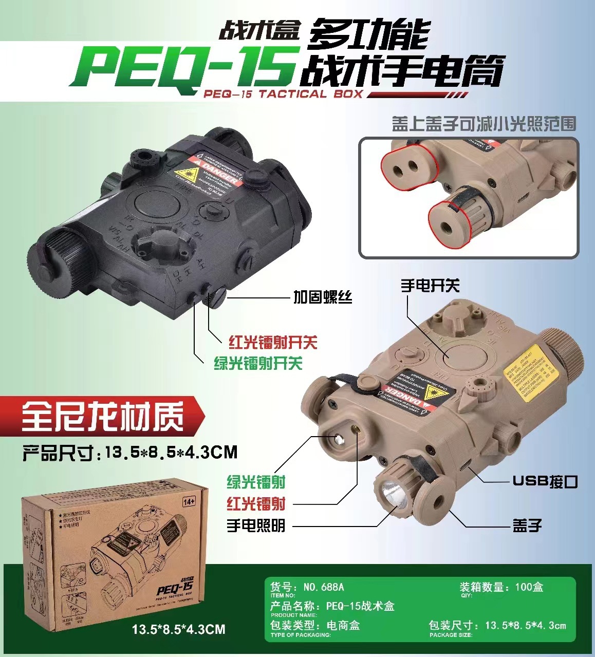 PEQ-15 Kotak Baterai Taktis Multifungsi Lampu senter Laser Hijau Cocok untuk 20-22mm