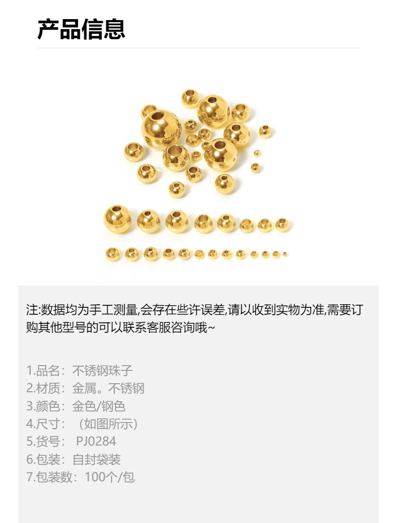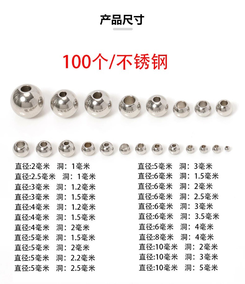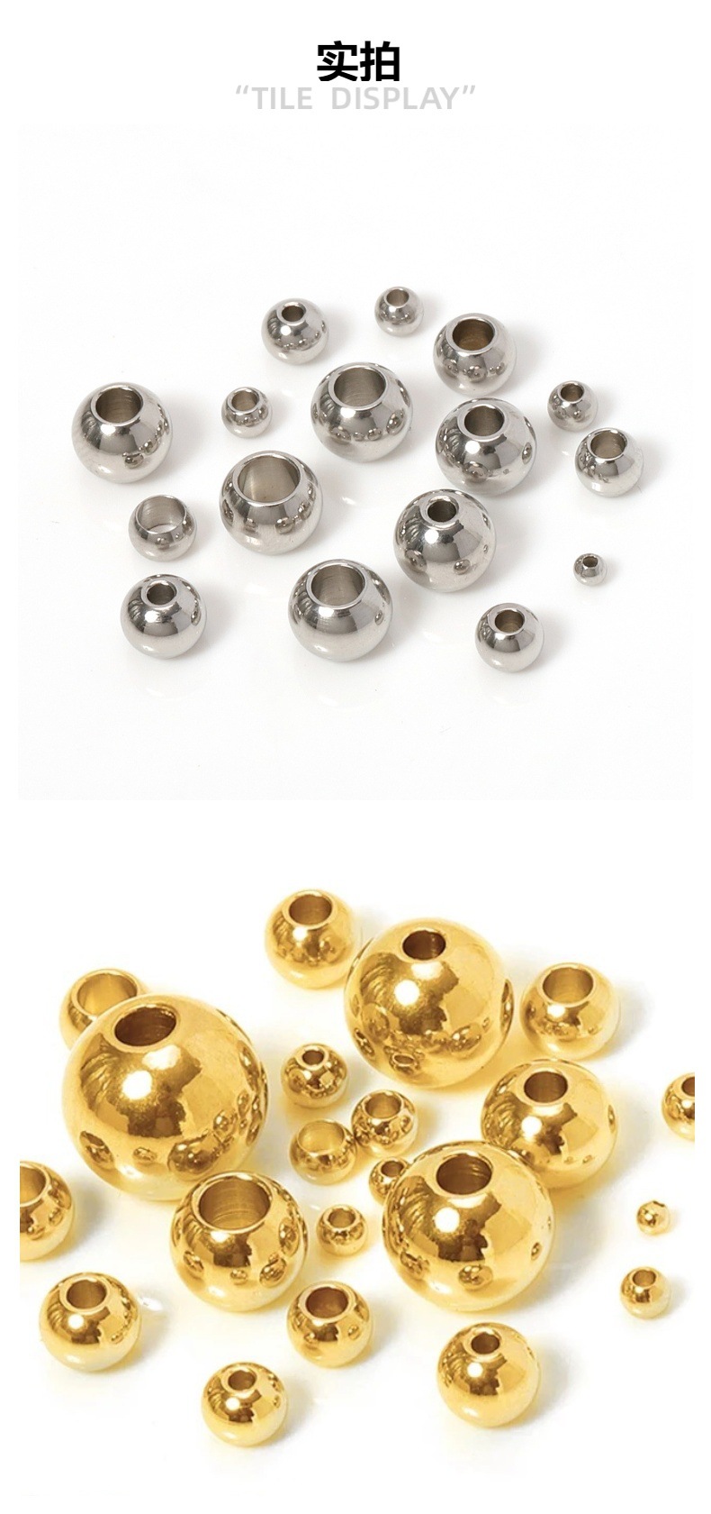 Manik-manik baja tahan karat emas warna mempertahankan melalui lubang manik-manik pengatur jarak manik-manik manik-manik longgar bola baja Aksesori Perhiasan DIY
