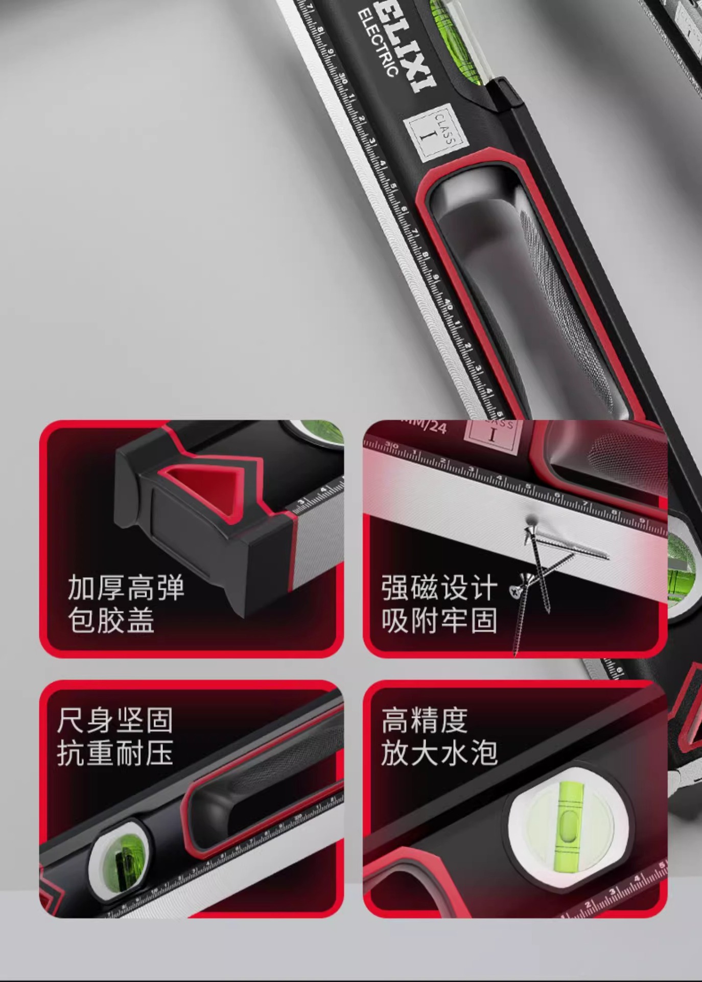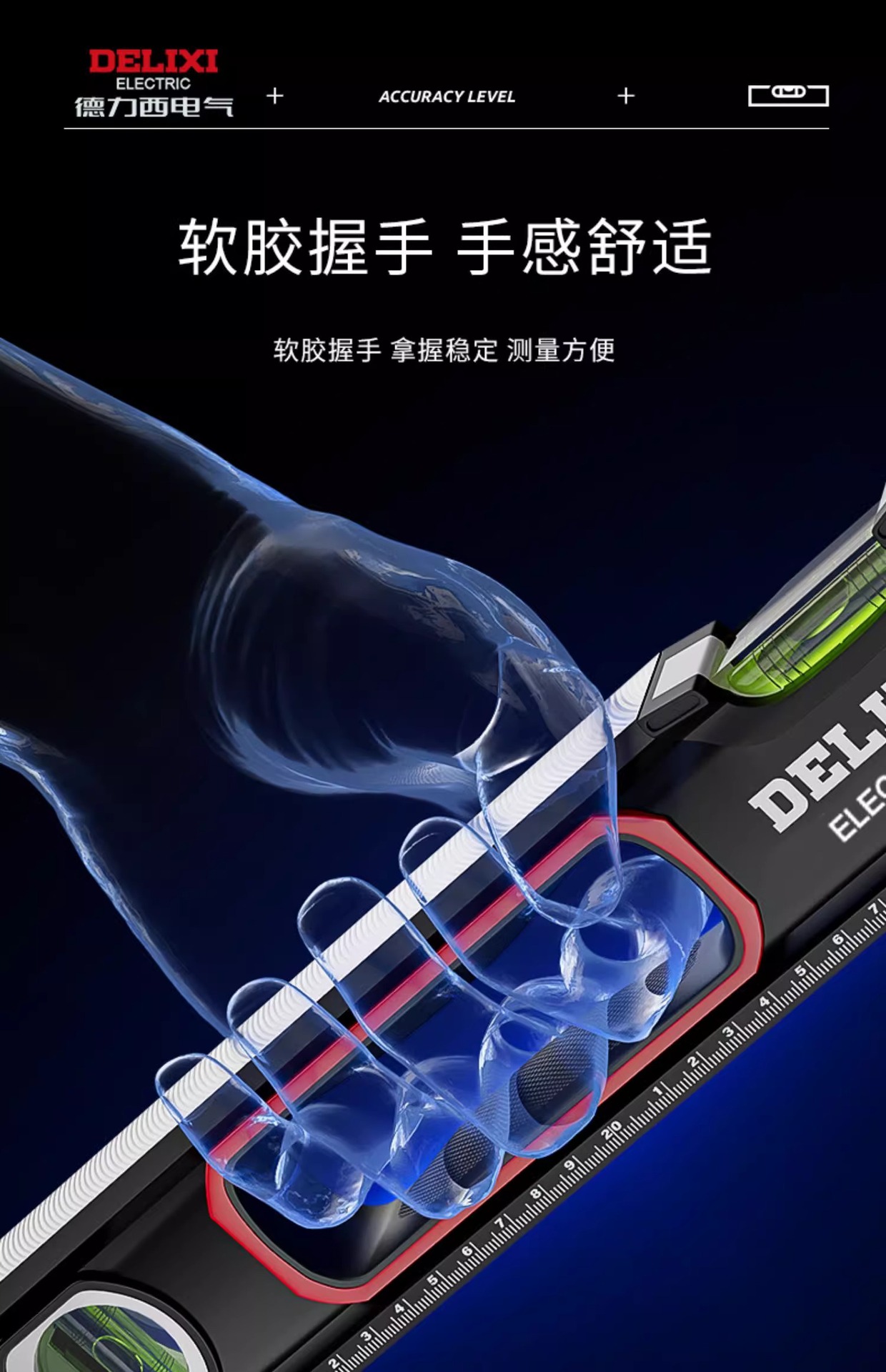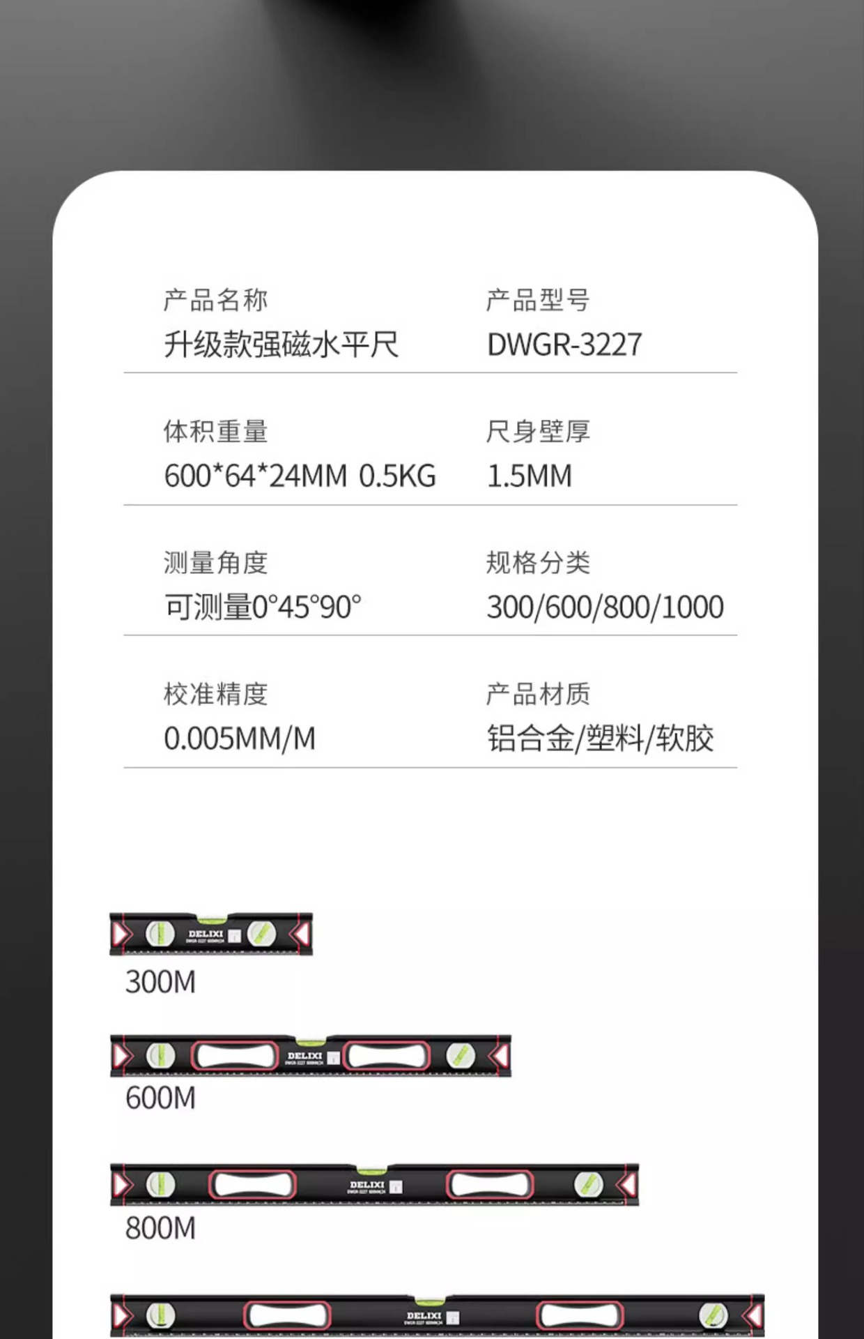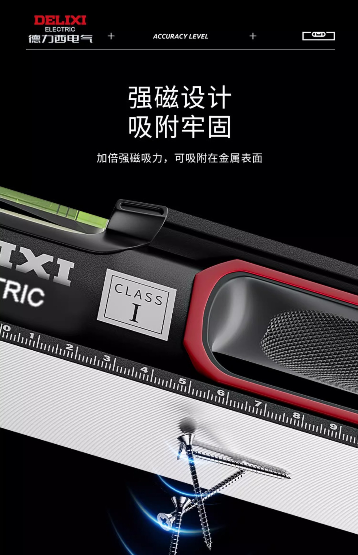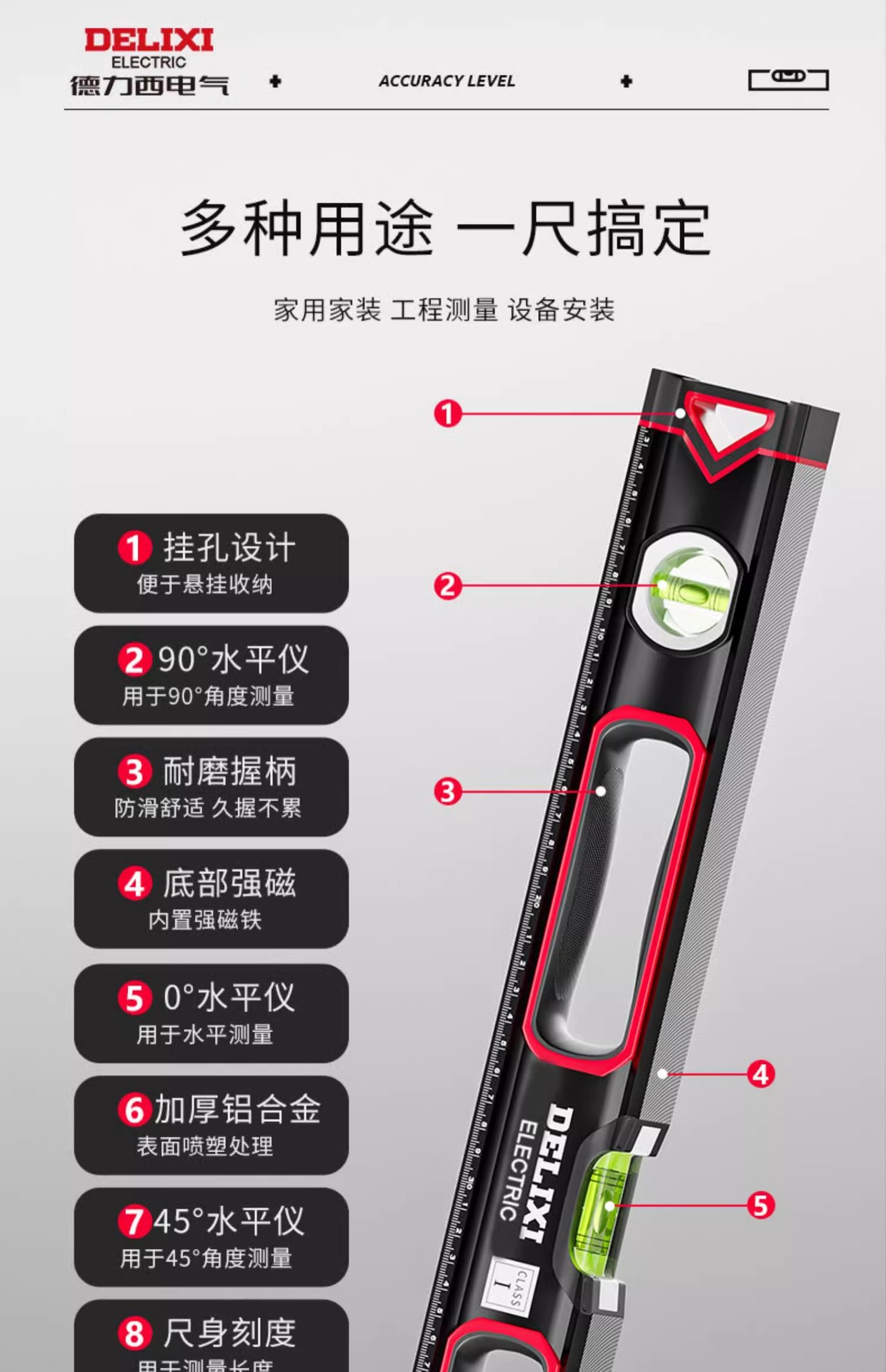 Delixi penggaris pengukur presisi tinggi industri tingkat magnetik kuat penggaris rumah tangga pengukur keseimbangan Aloi penggaris dekorasi