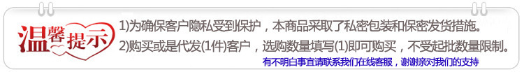 如因个人喜好问题在未使用情况下退货或者拒收,未拆封商品包装,如商品有塑封未拆封,不影响二次销售公司不承担运费,如因产品质量问题在未使用过的情况下收货7天内处理退货,退回后经我方查实,公司承担单程运费,退货直接走阿里流程申请退款,为避免不愉快的合作,不能接受者,请勿加盟请勿下单。(强烈声明一经使用,概不受理)(安全套、情趣内衣、特价清仓类、特别注明类产品,不予退换)