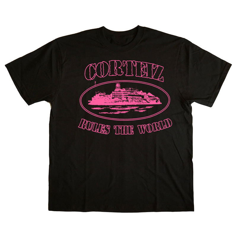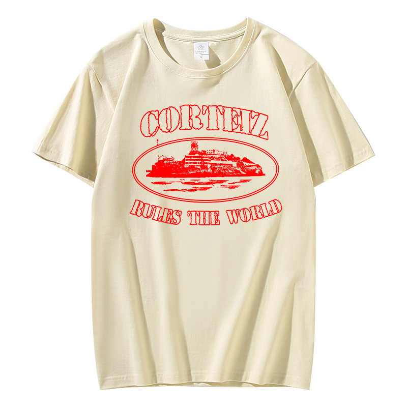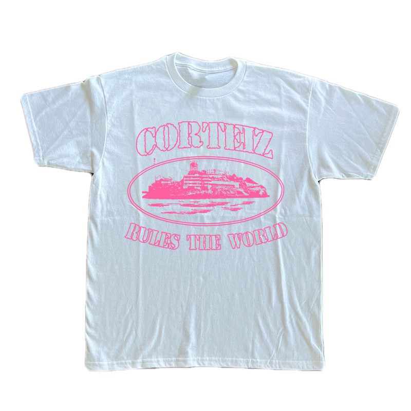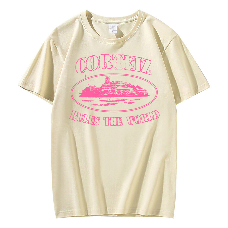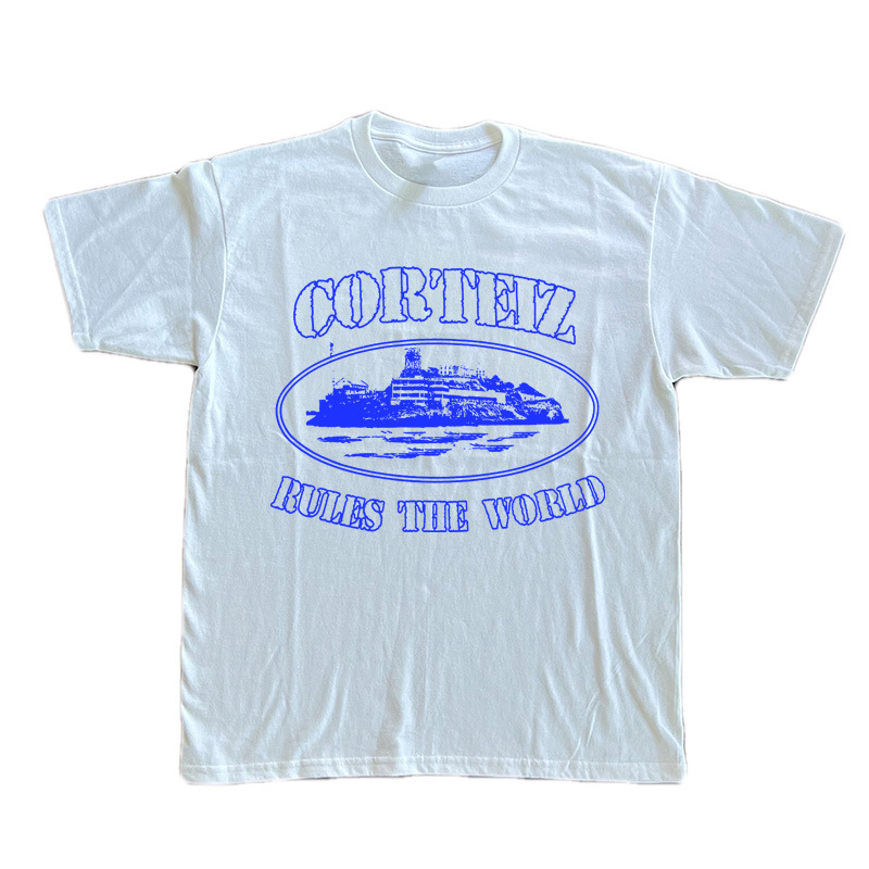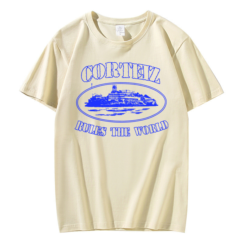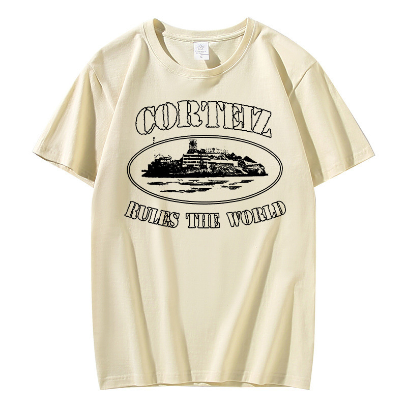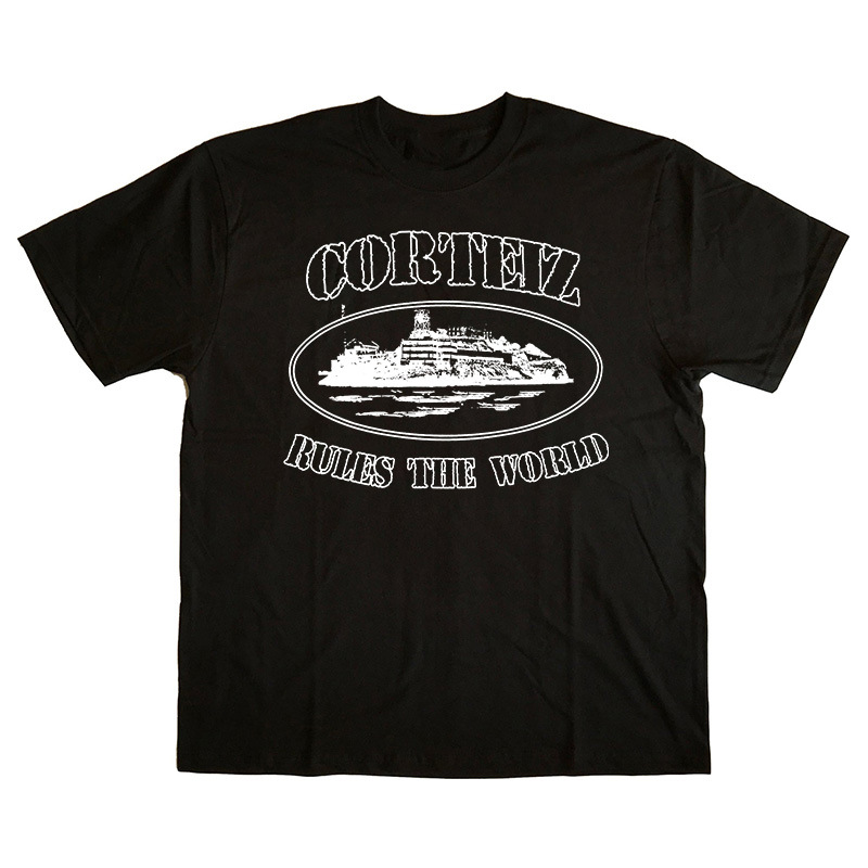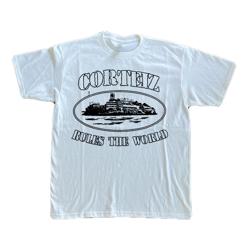 Kaos lengan pendek Corteiz Alcatraz untuk pria, atasan serbaguna bergaya Hong Kong dari katun trendi, pakaian kasual musim panas dari katun murni