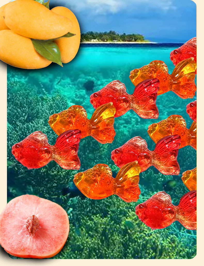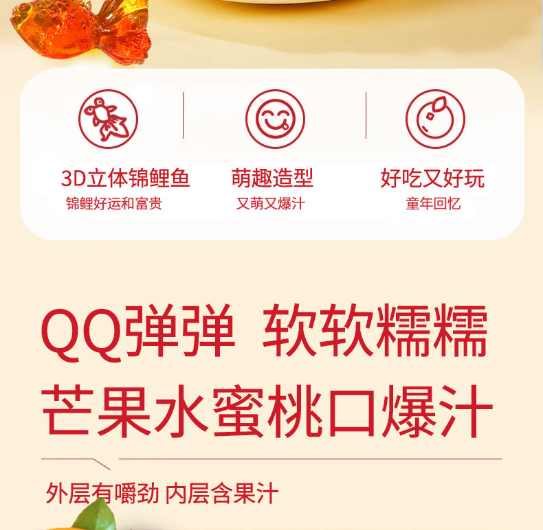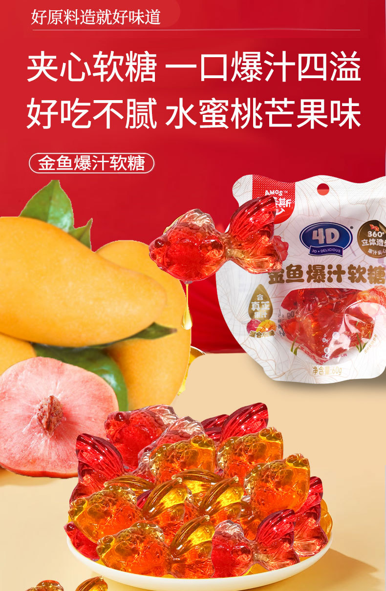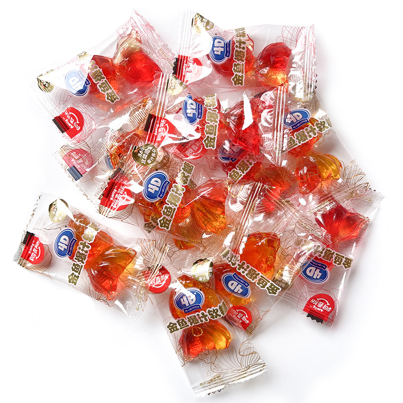 Permen gummy ikan mas emas Ames 4D rasa buah, isi gummy ikan kecil, 108g, bentuk permen gummy koi.