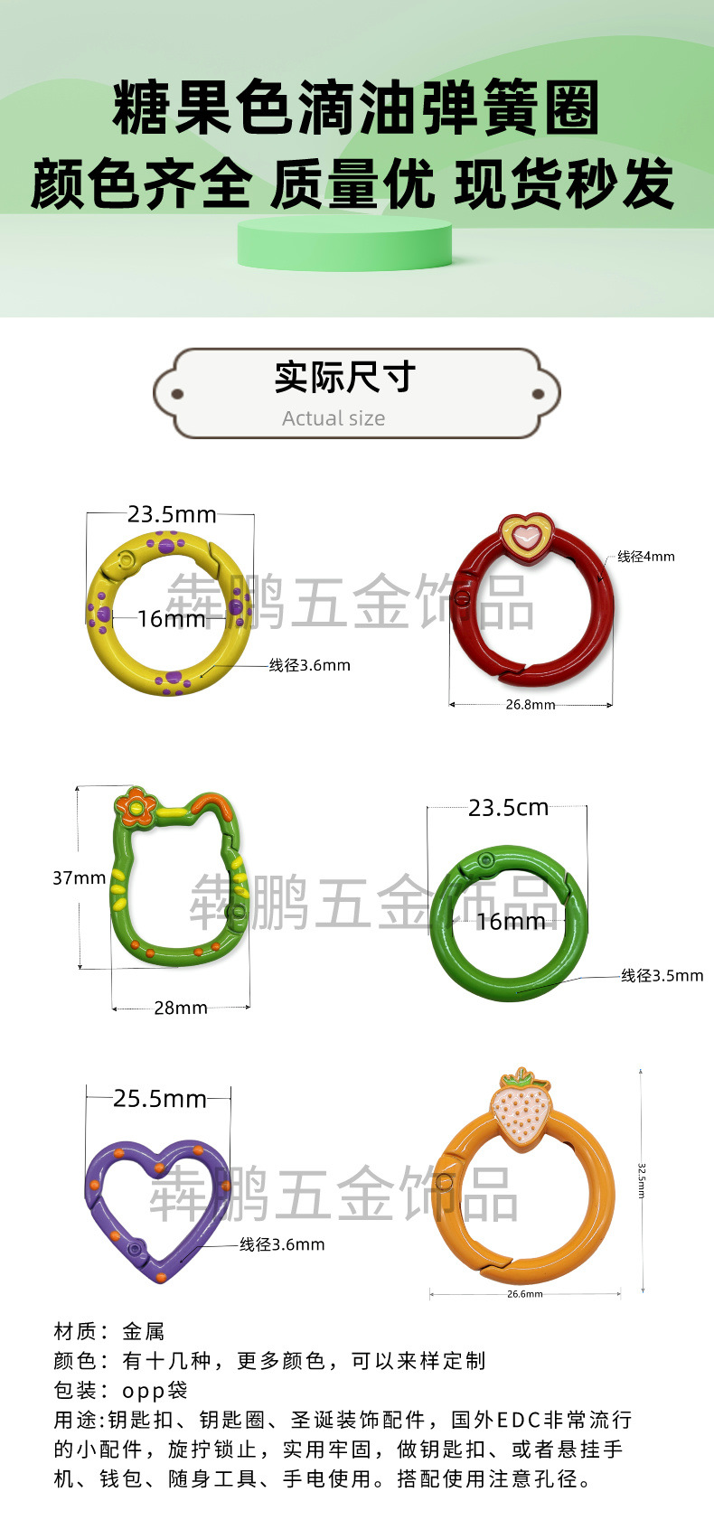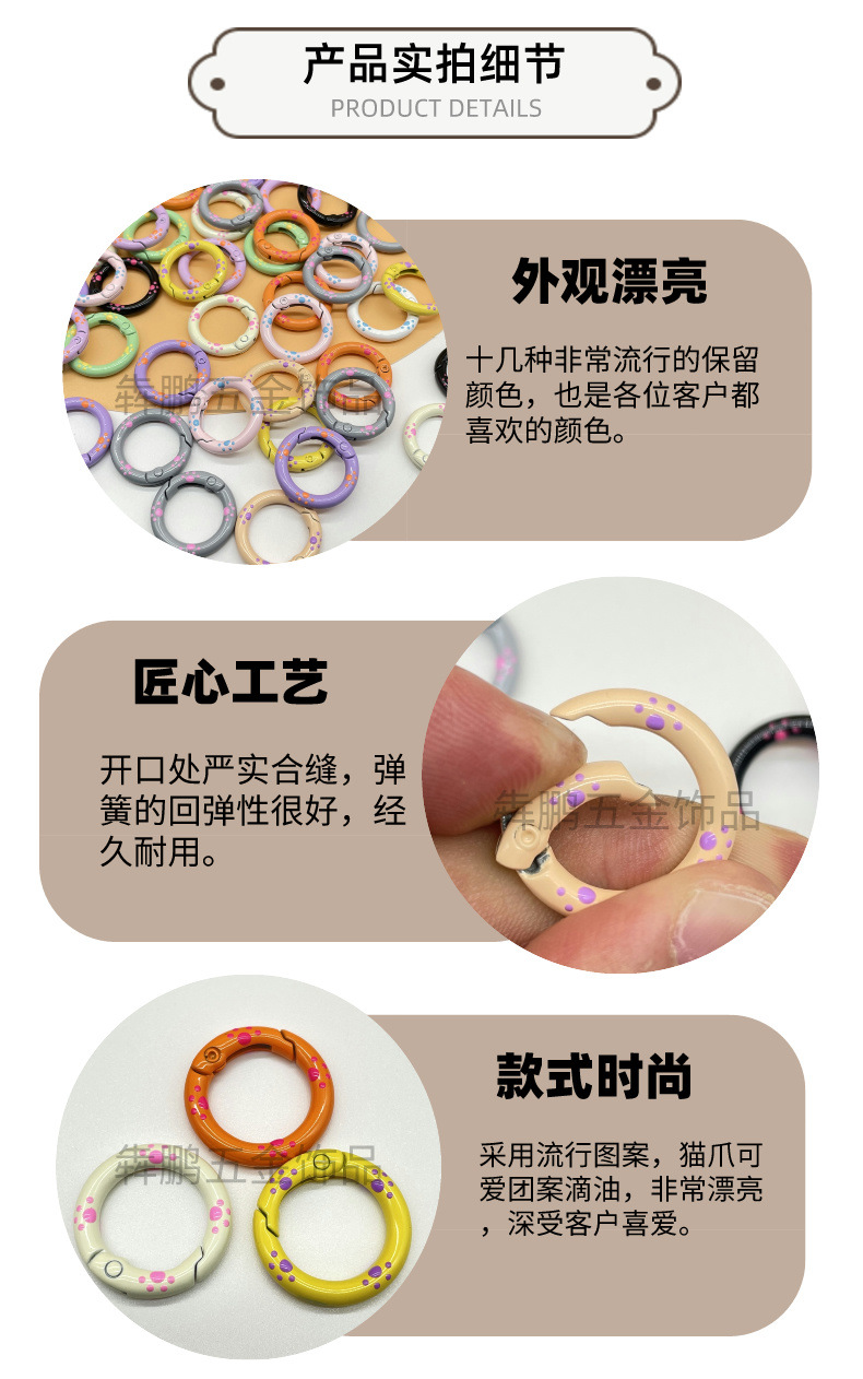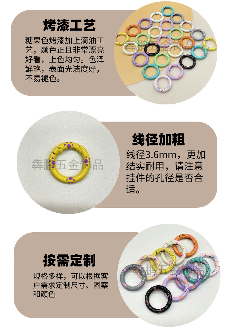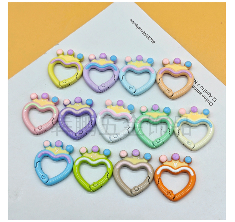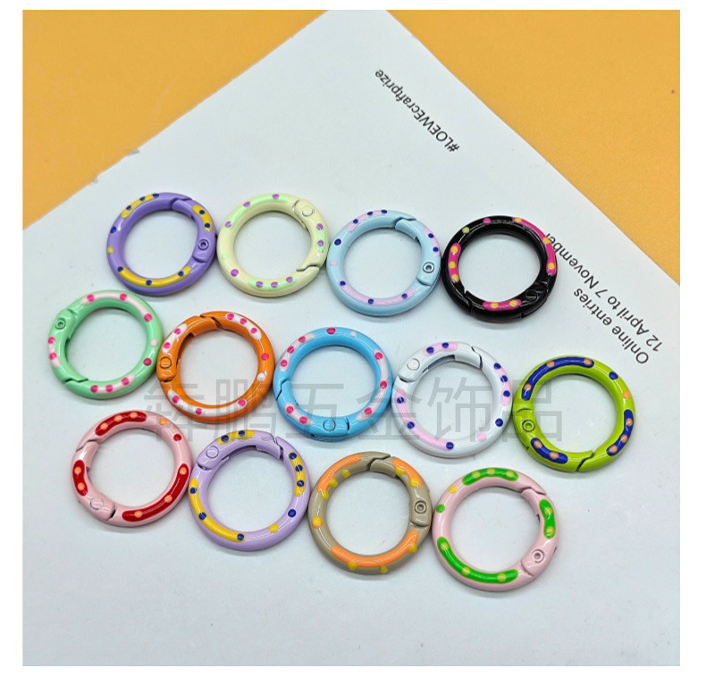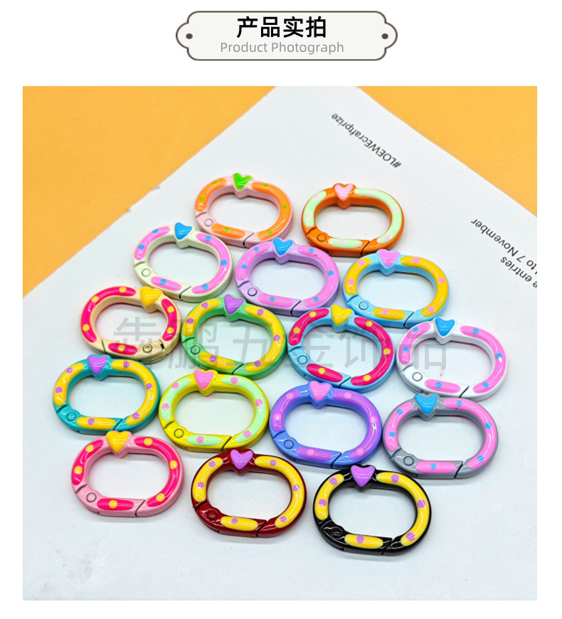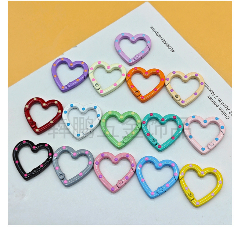 Cincin kunci hati gesper pegas cat warna lukisan tangan dripping minyak persik hati diy aksesoris perhiasan cincin pegas paduan seng