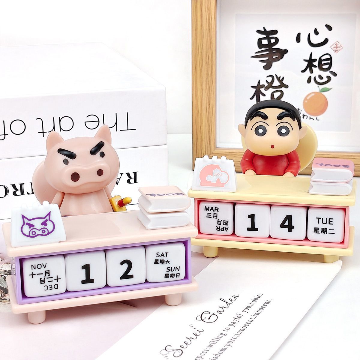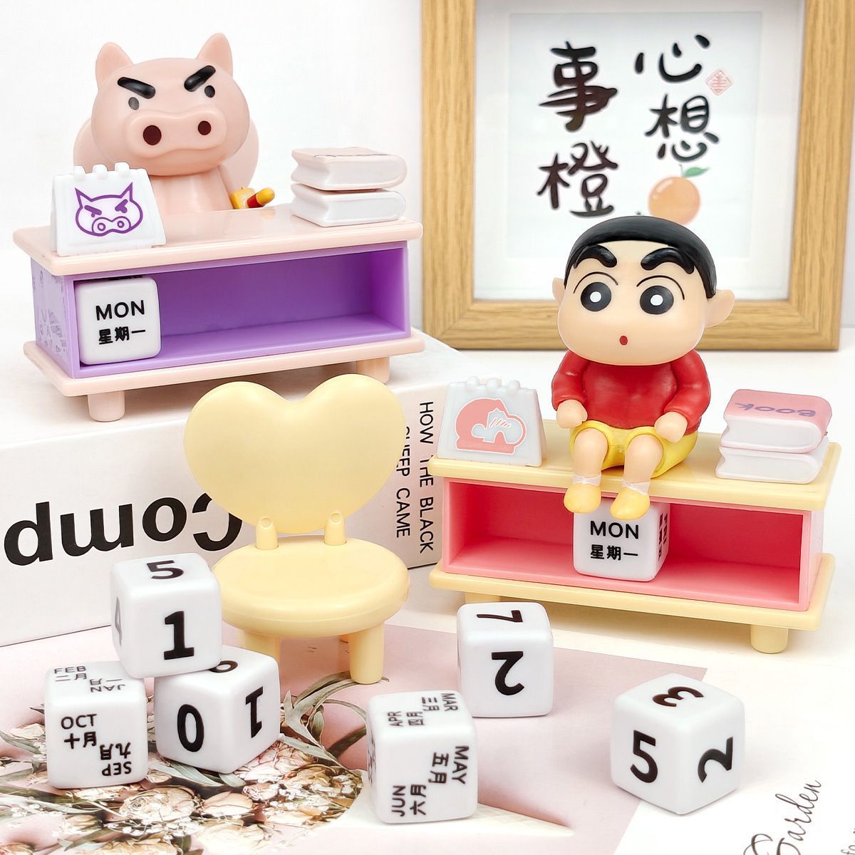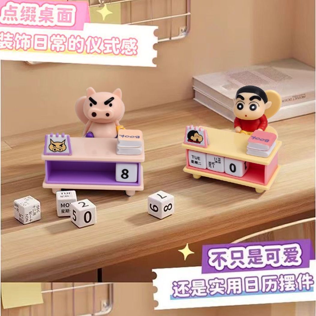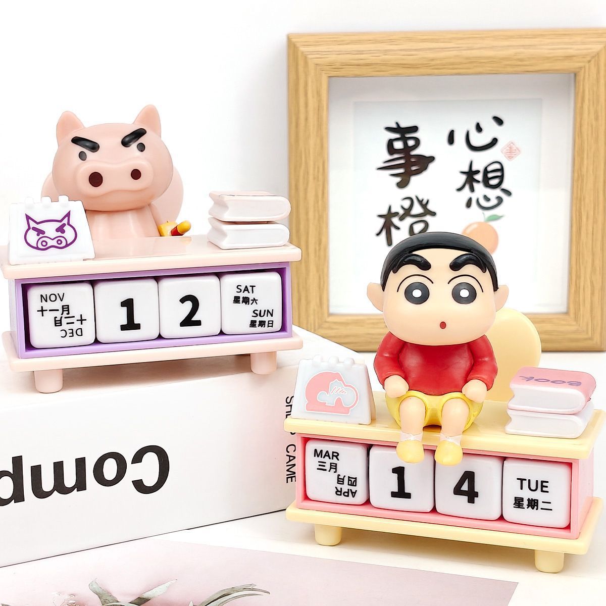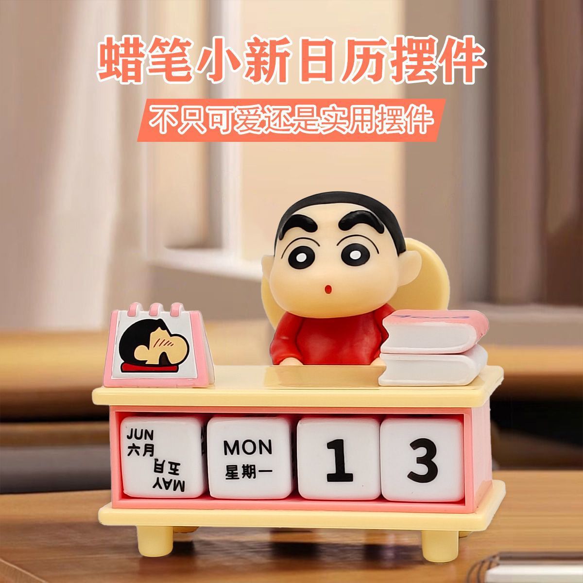 蜡笔小新课桌日历摆件小新左卫门手办周边公仔玩偶桌面摆件礼物女