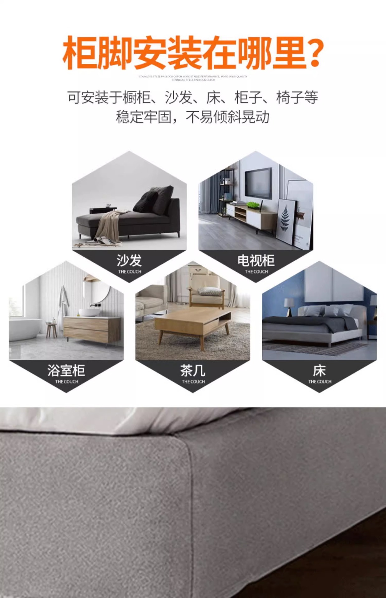 Kaki kabinet furnitur, kaki tempat tidur, kaki penyangga, kaki sofa, kaki kabinet TV, kaki meja samping tempat tidur, bantalan kaki peninggi furnitur anti selip tahan aus