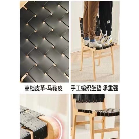 Kursi makan kayu Nordic, cahaya mewah modern minimalis kursi belakang rumah restoran kursi santai desainer tali kursi sadel
